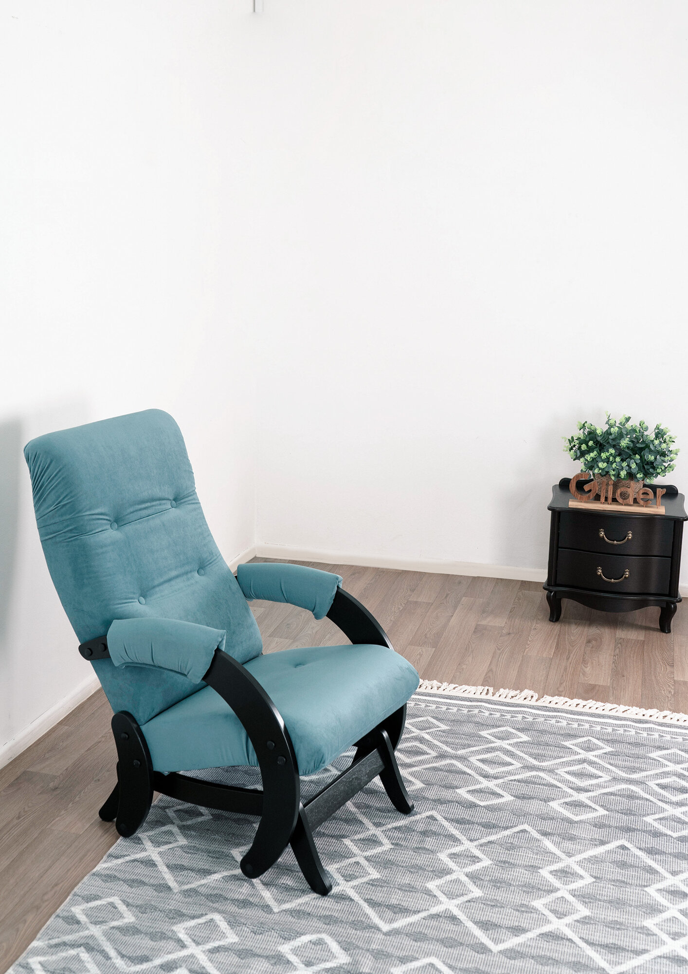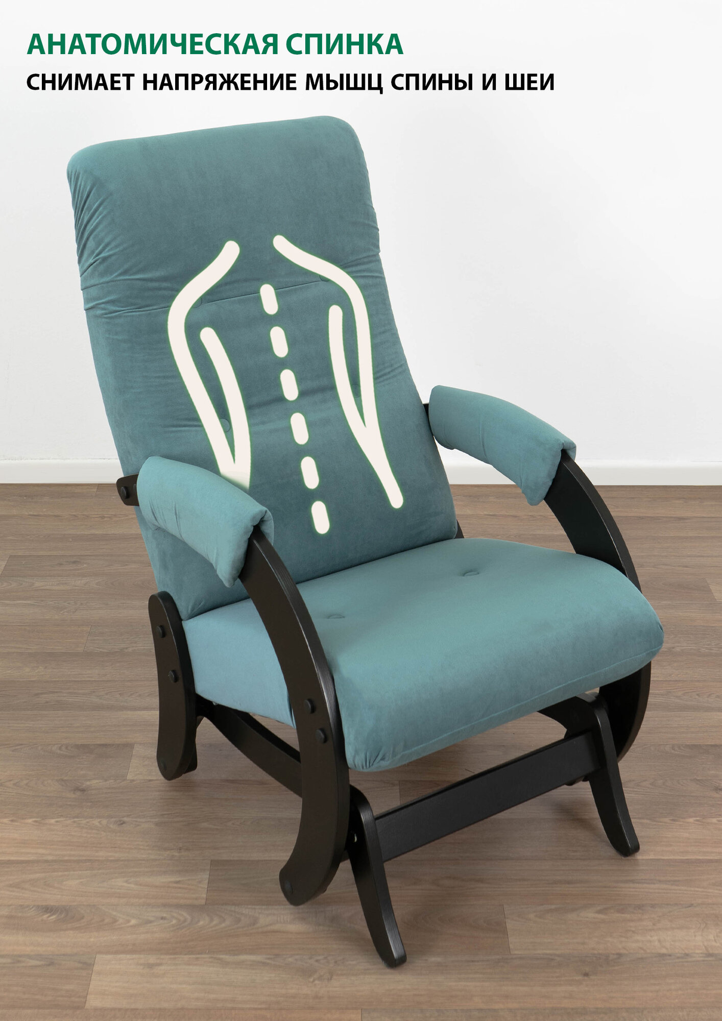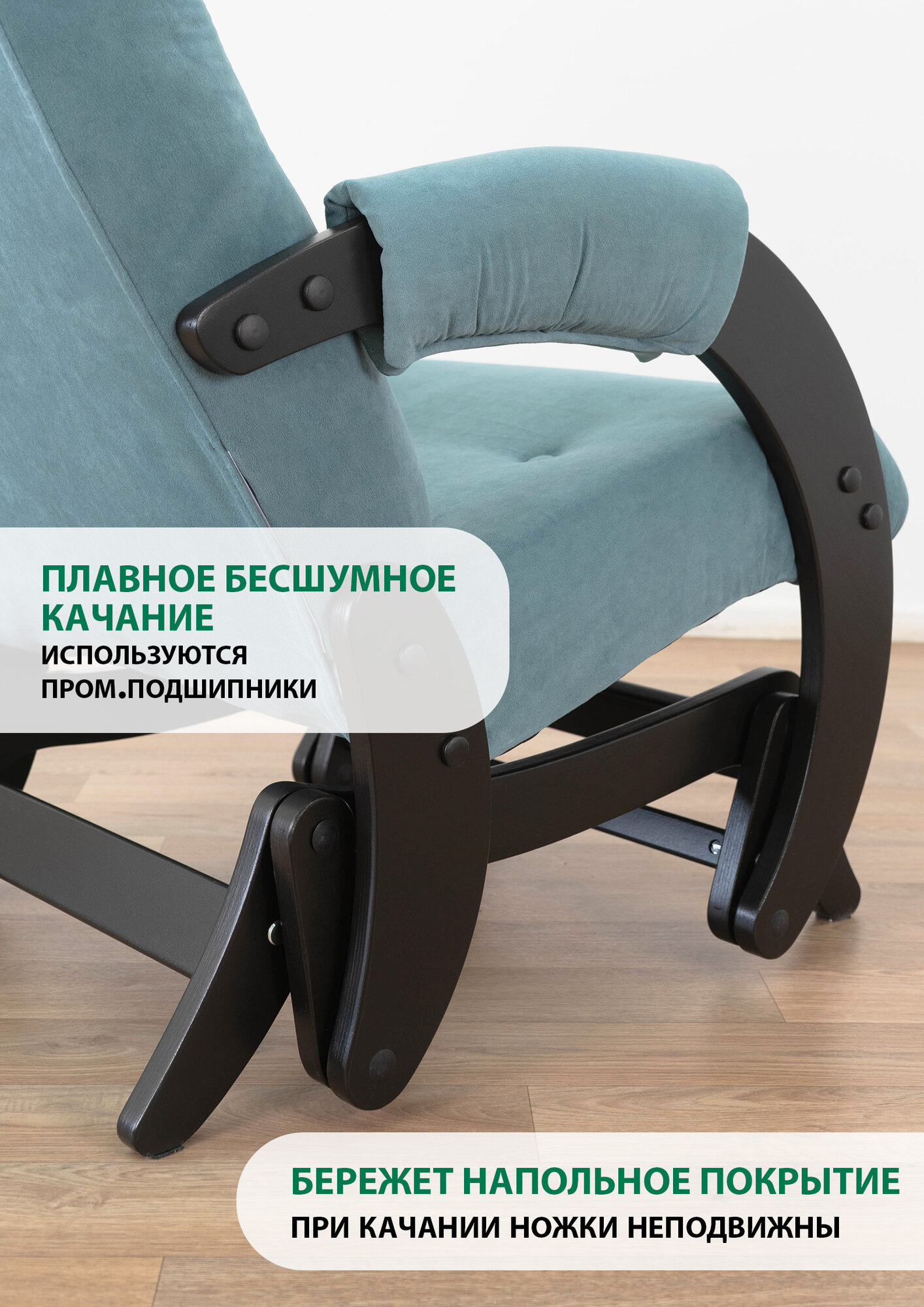 Кресло-качалка с мятниковым механизм Glider 68 в ткани Микровелюр, цвет морской волны / сине-зеленый