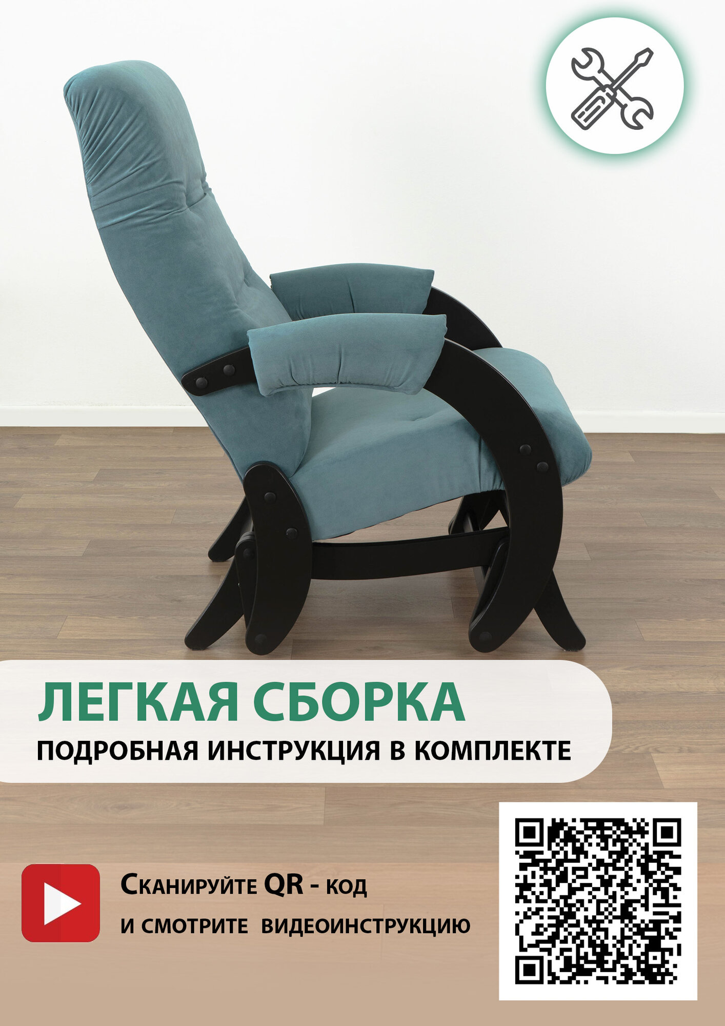 Комплект Glider кресло-качалка 68 c пуфом в ткани Микровелюр, маятниковый механизм, цвет морской волны
