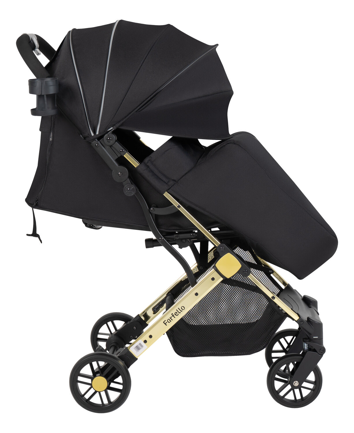 Коляска прогулочная складная Farfello Comfy Go Comfort Chrome, черный на золотом хроме