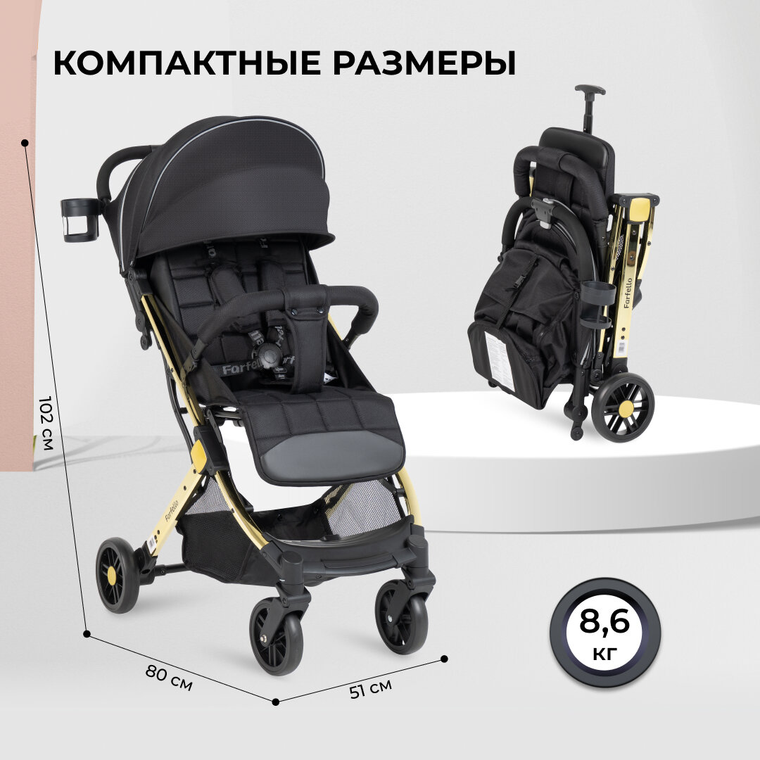 Коляска для детей Farfello Comfy Go / прогулочная коляска / то 7 месяцев / CG-99 / цвет черный / рама золото