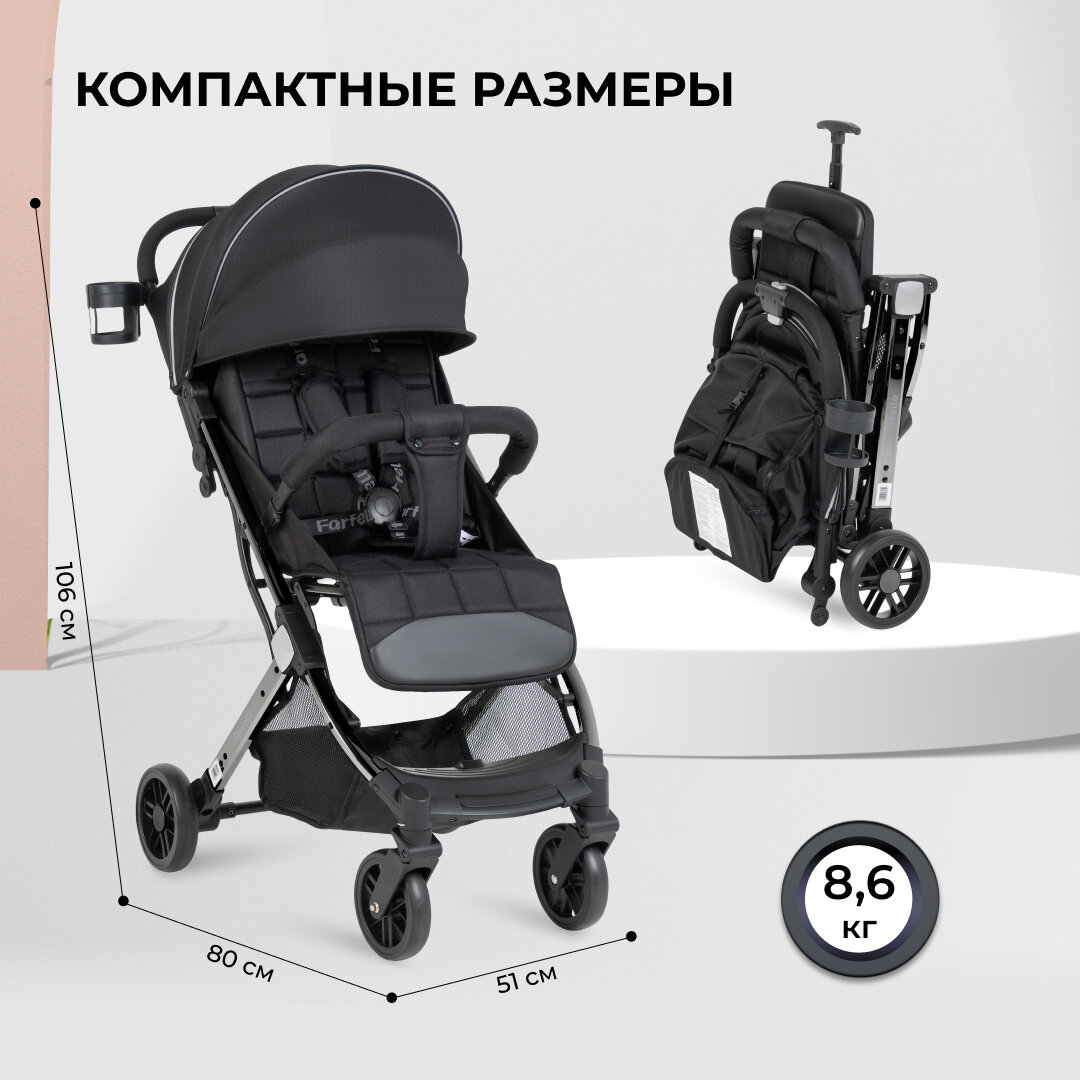 Купить Коляска прогулочная складная Farfello Comfy Go Comfort Chrome, черный