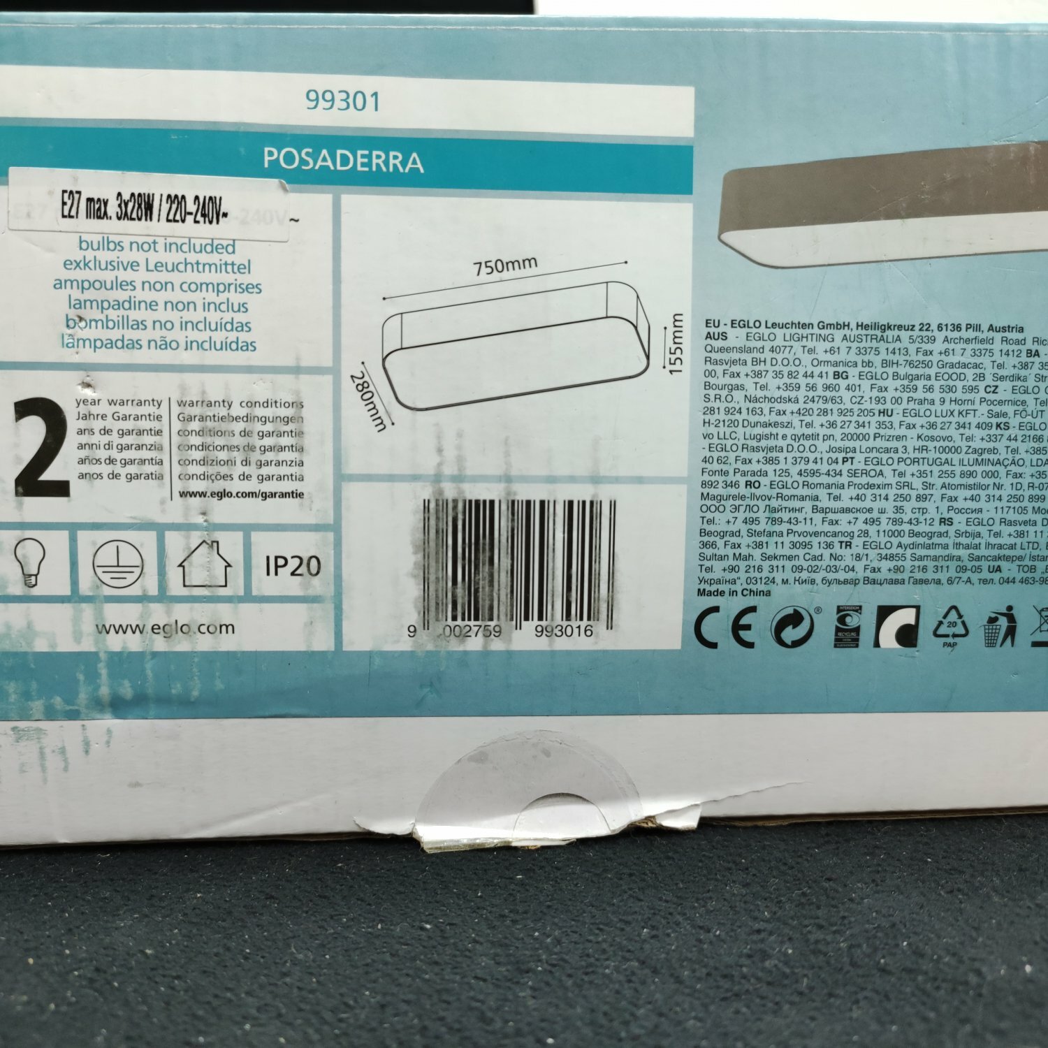 Светильник потолочный 750*280мм 3*E27 POSADERRA Eglo 99301