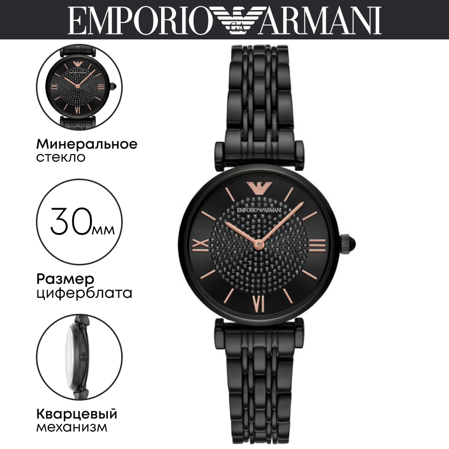 Купить Черные Женские Часы Emporio Armani со стразами