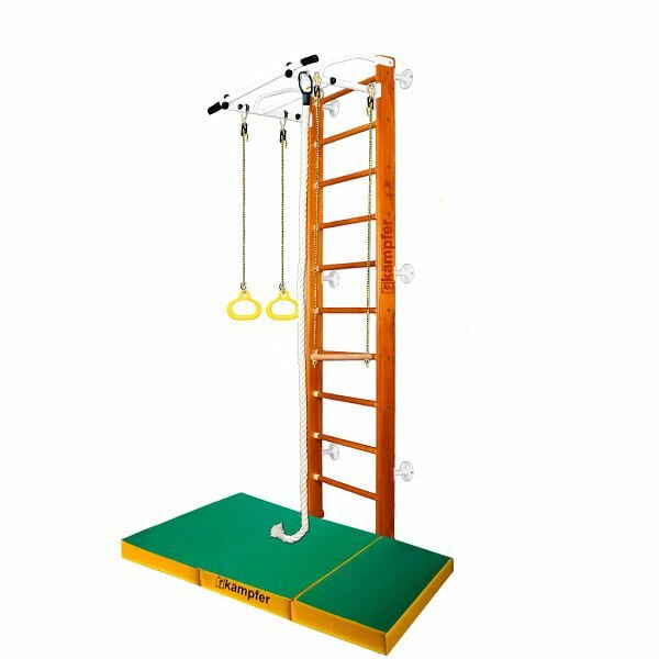 Шведская стенка Kampfer Helena Wall c матом №6, №1 натуральный Стандарт белый турник c матом №6 зеленый/желтый