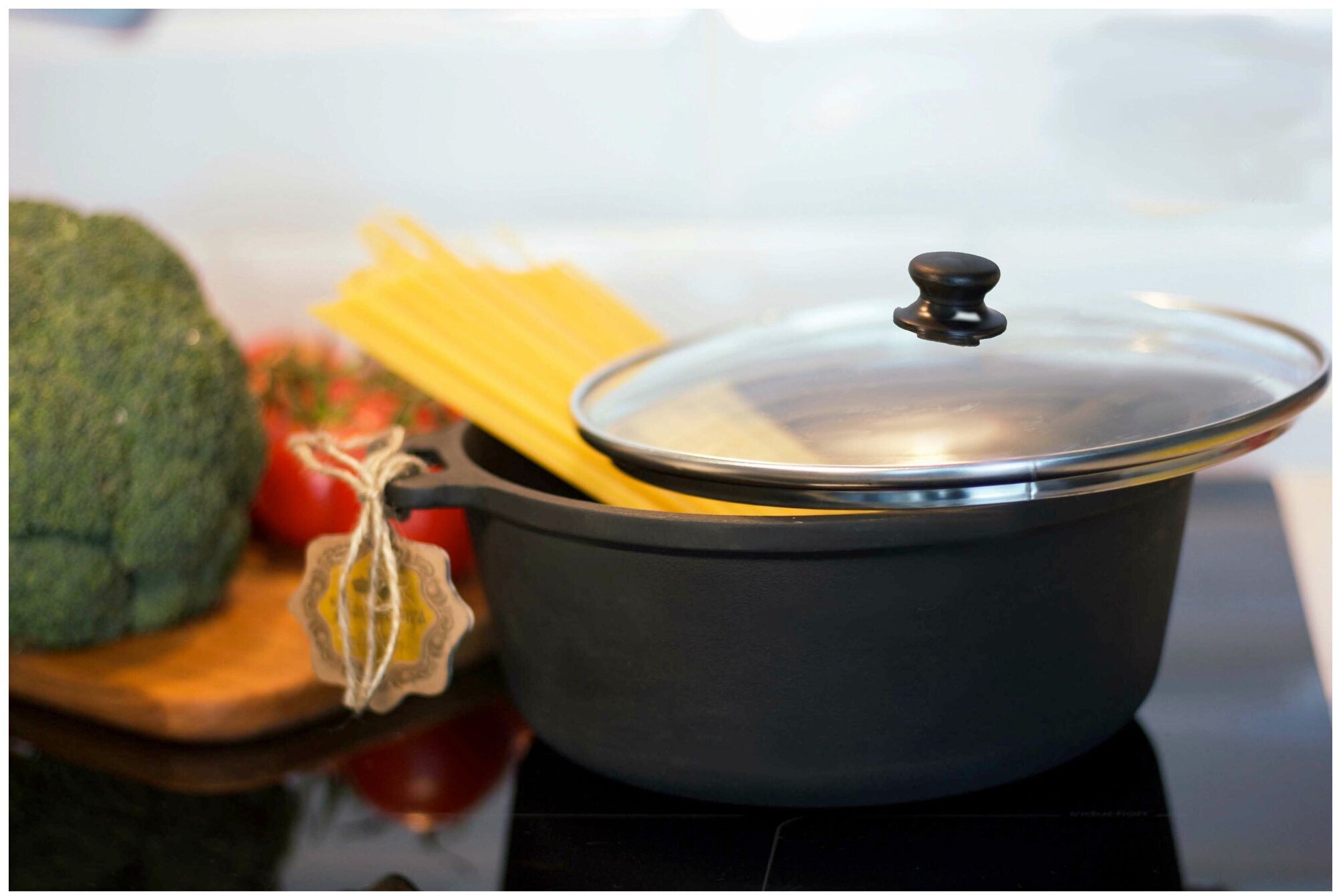 | Дополнительная информация | материал крышки: стекло; материал ручек: чугун |
