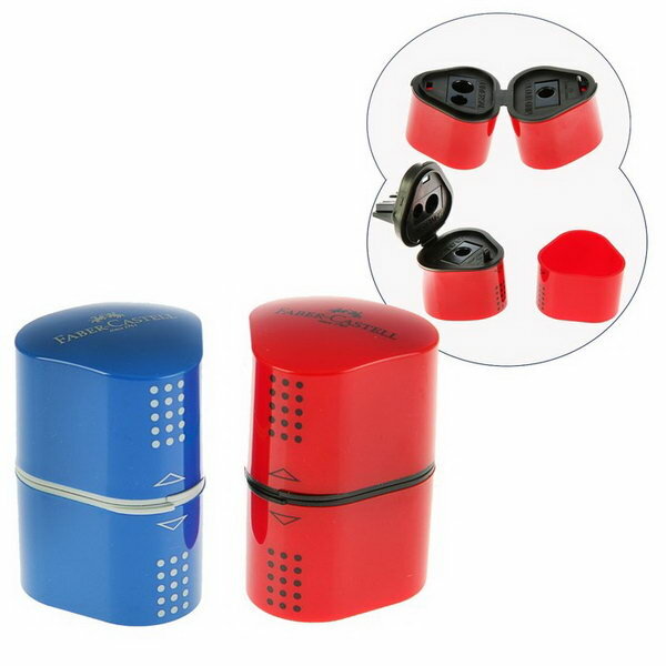 Точилка FABER-CASTELL «Trio Grip 2001», 3 отверстия, 2 контейнера, пластиковая, красная/синяя