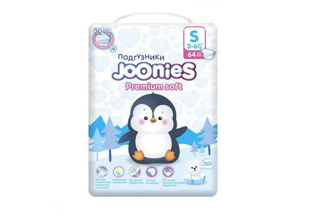СохранитьJoonies Подгузники Premium Soft, S (3-6 кг.), 64 шт. интересное: