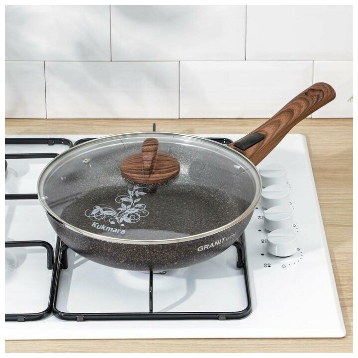 KUKMARA Сковорода Granit ultra, d26 см, стеклянная крышка, съёмная ручка, антипригарное покрытие
