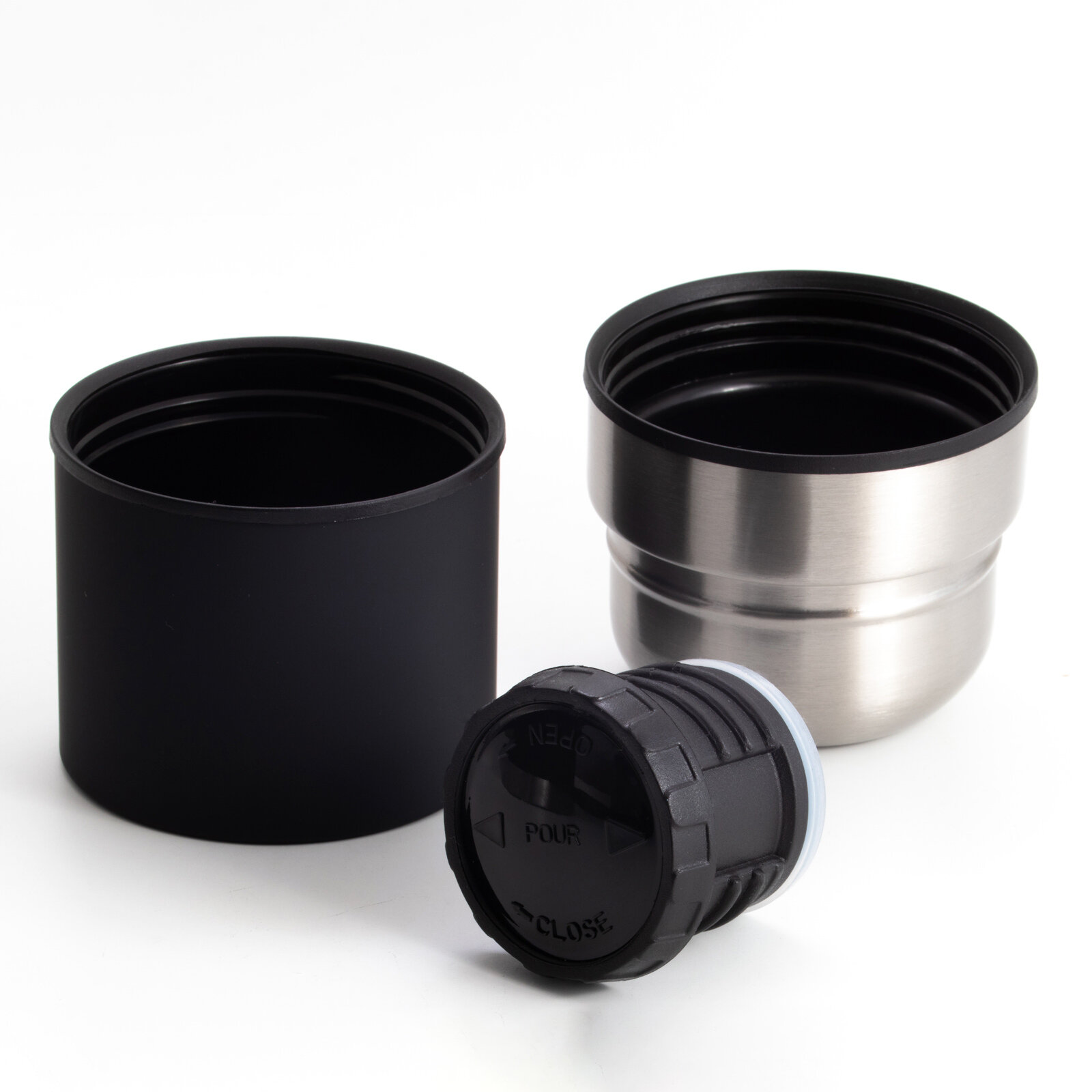 | Плюсы: | У термоса две чашки - очень удобно. Через 12 часов температура кипятка снизилась до 50 градусов. Приятно держать в руке. В комплекте два запасных уплотнителя для пробки. Пробка вкручивается, без клапана. В перевернутом состоянии не протекает (постоял 1 час). |