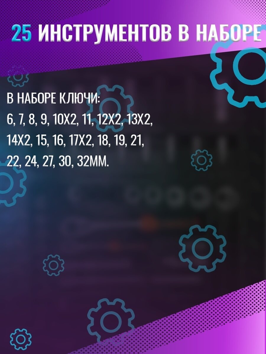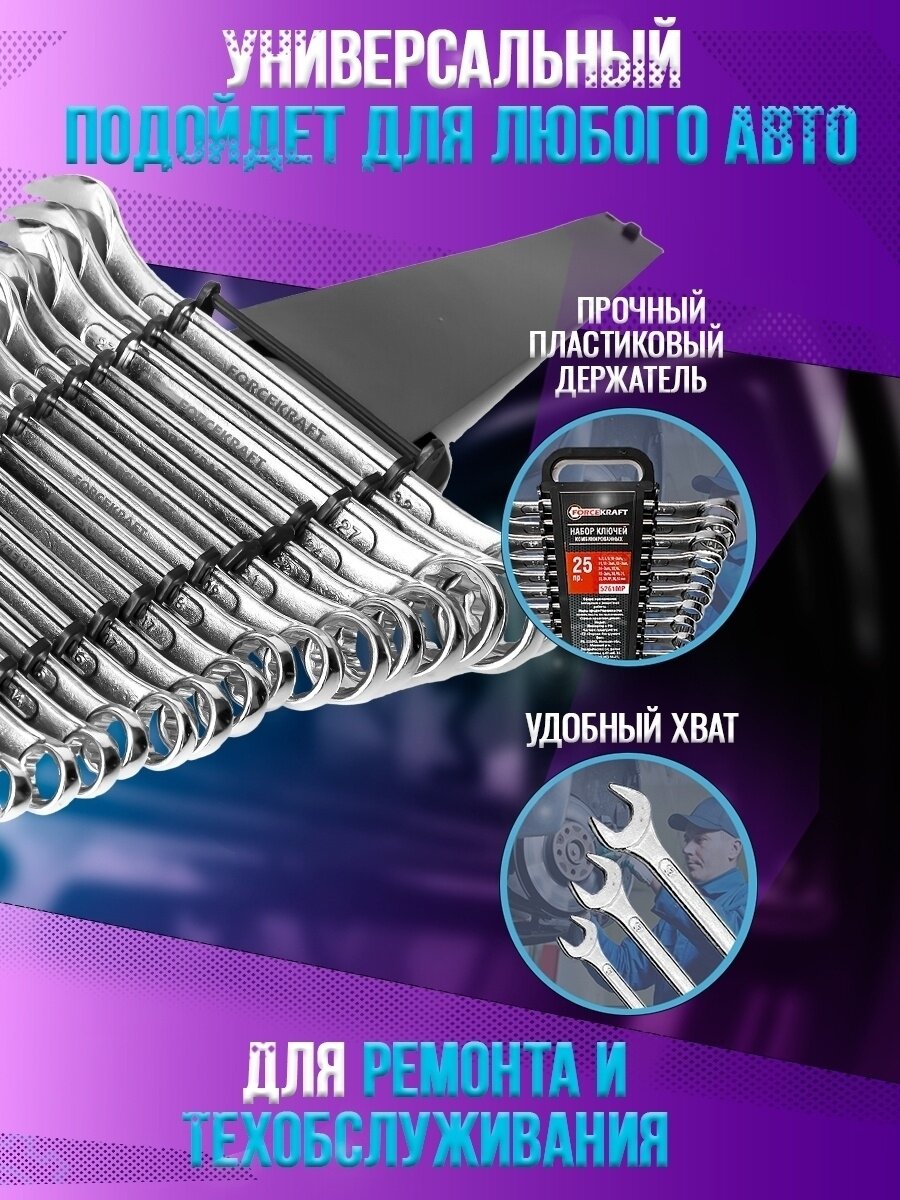 Набор ключей комбинированных 25пр. (6-19, 21, 22, 24, 27, 30, 32мм) в пластиковом держателе FORCEKRAFT FK-5261MP