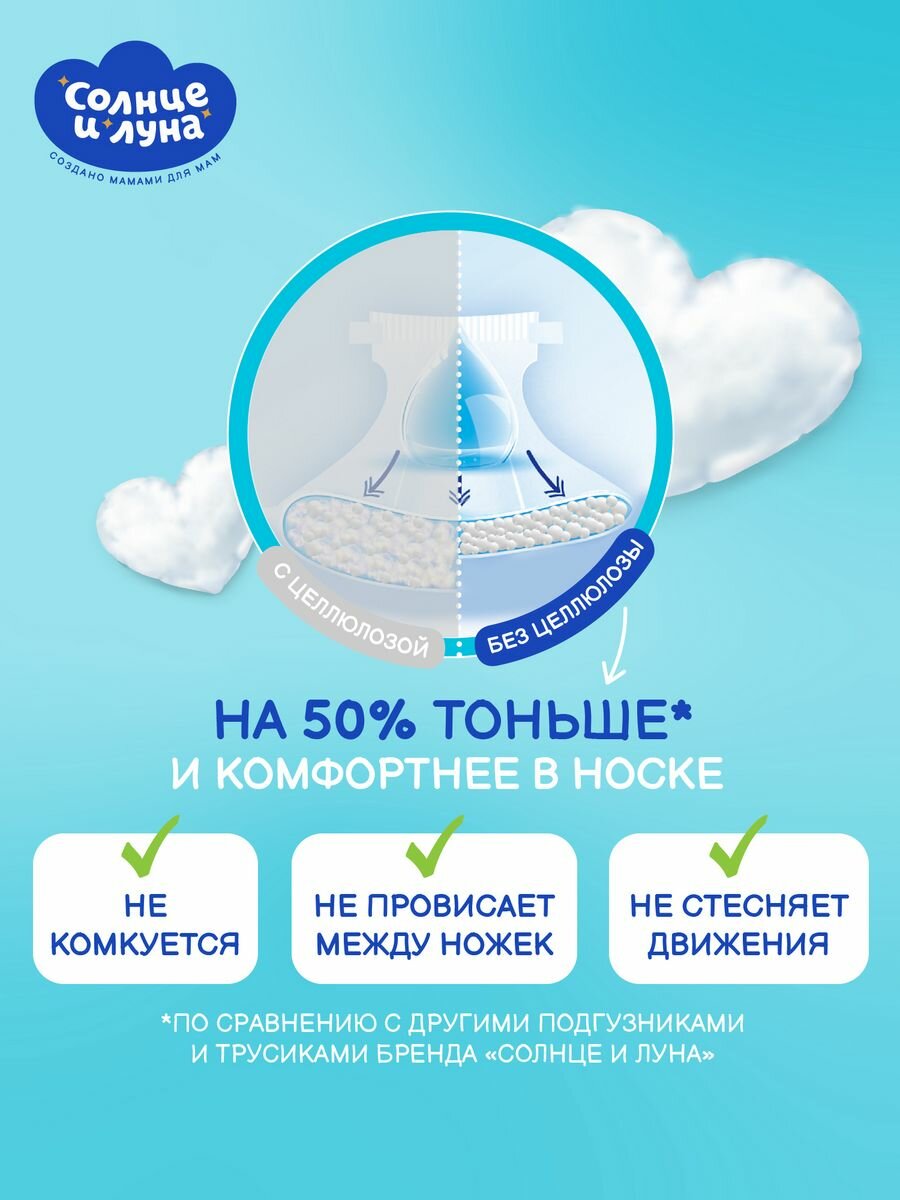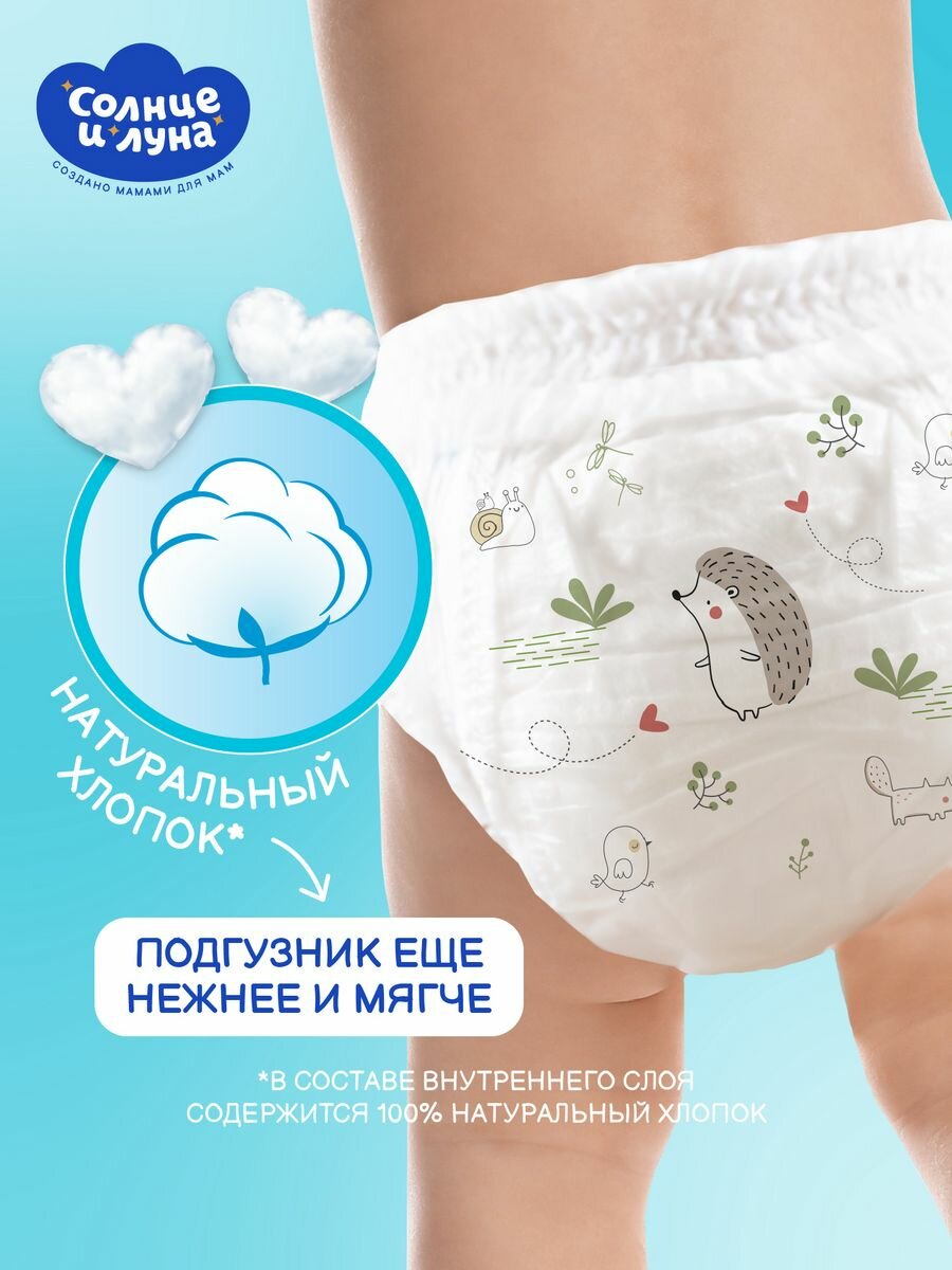 Подгузники созданы из натуральных материалов, тонкие, дышащие. Надежно впитывают влагу, за ночь не протекают. Есть индикатор влажности.
