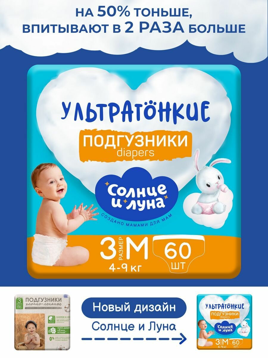 Подгузники «Солнце и Луна» Mega-pack, 4-9 кг, 60 шт/уп