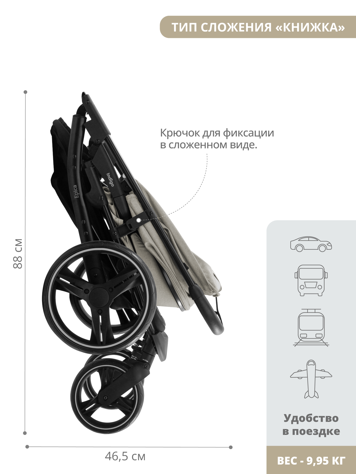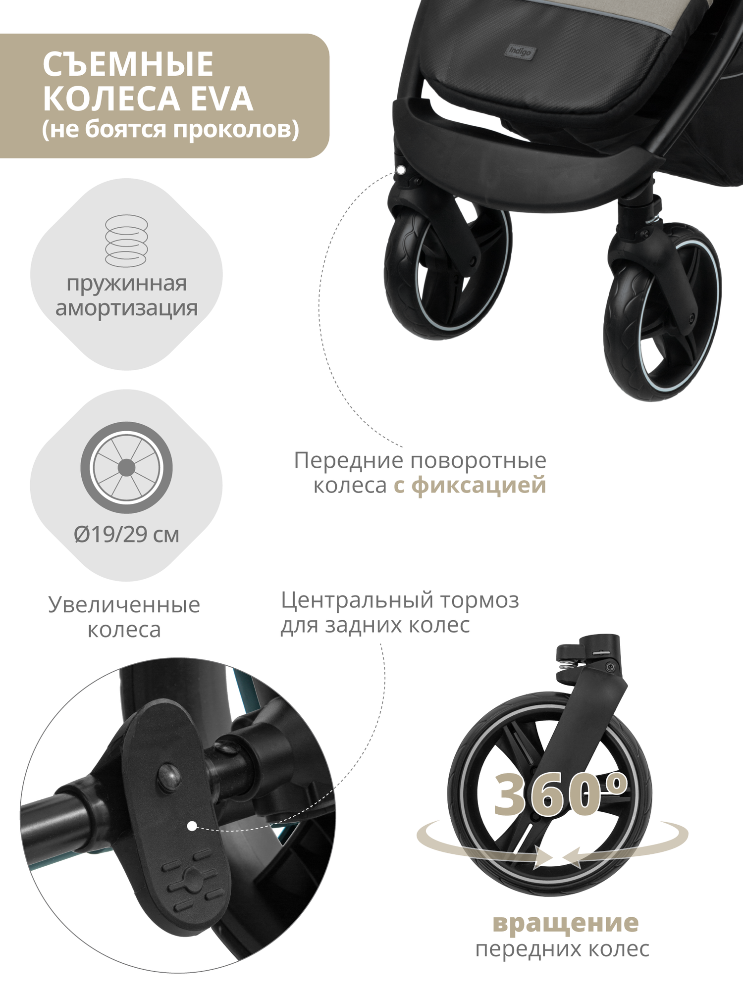 СохранитьКоляска прогулочная детская Indigo EPICA XL с большими колесами всесезонная складная, бежевый интересное:
