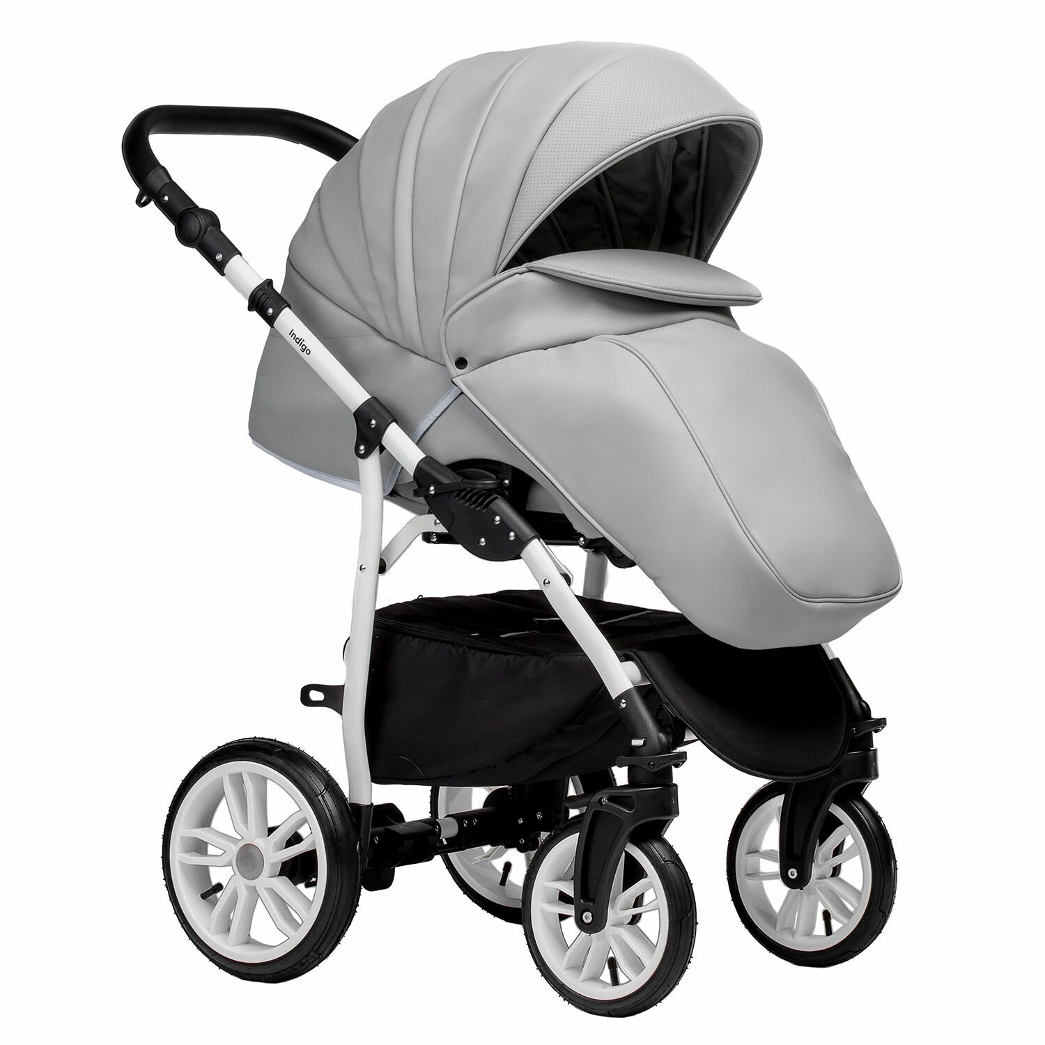 Коляска-люлька универсальная 2в1 Indigo Special прогулочная всесезонная с большими колесами (04), серый