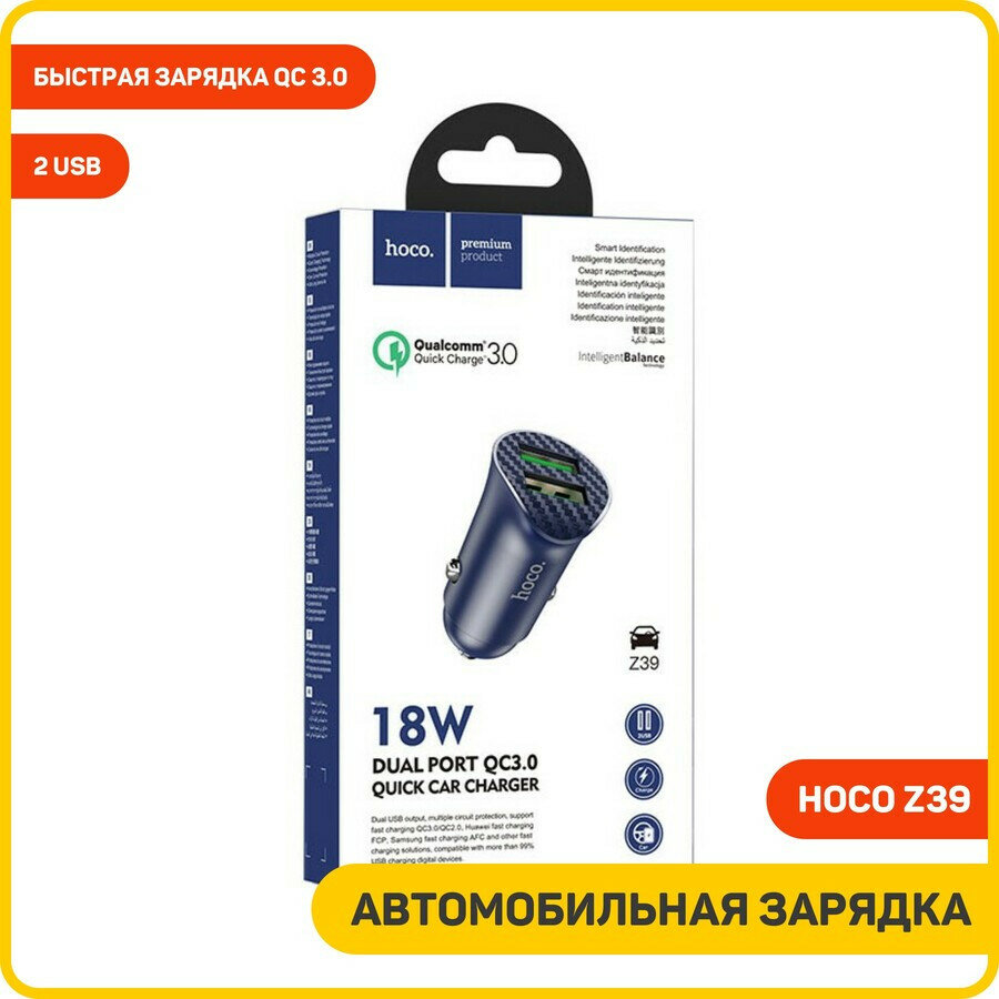 Автомобильная зарядка (от прикуривателя) HOCO Z39 QC3.0, два порта USB, 18W черная