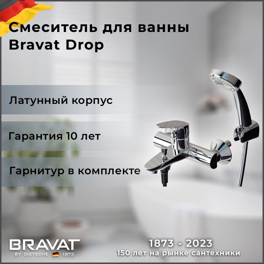 Bravat Смеситель для ванны с гарнитуром Drop F64898C-B Bravat