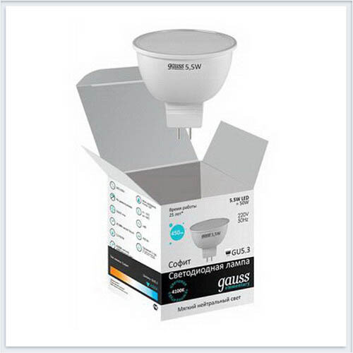 Ниже Вы можете прочитать отзывы на Лампа светодиодная (LED) рефлекторная MR16 5,5Вт 220В GU5,3 4100К 450Лм gauss, ознакомится с подробными характеристиками, посмотреть интересные обзоры и фотографии на Лампа светодиодная (LED) рефлекторная MR16 5,5Вт 220В GU5,3 4100К 450Лм gauss.