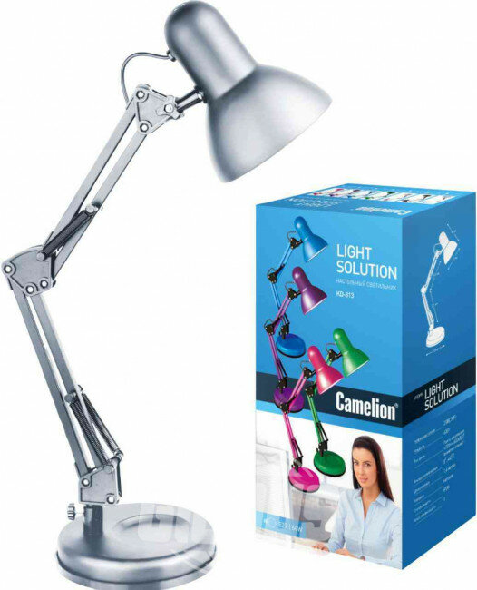 Лампа офисная Camelion Light Solution KD-313 C03, E27, 40 Вт, цвет арматуры: серебристый, цвет плафона/абажура: серебристый