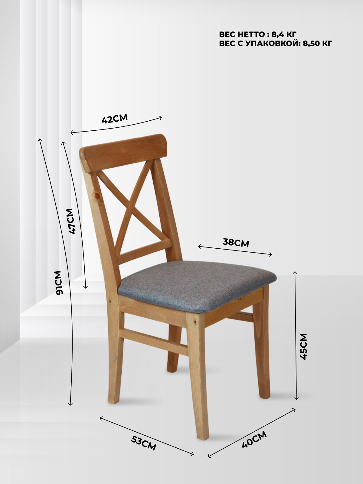| Дополнительная информация | Деревянный стул со спинкой - традиционное решение для интерьера в современном стиле. Он эстетичный и удобный, обеспечивает максимальное удобство во время эксплуатации. |