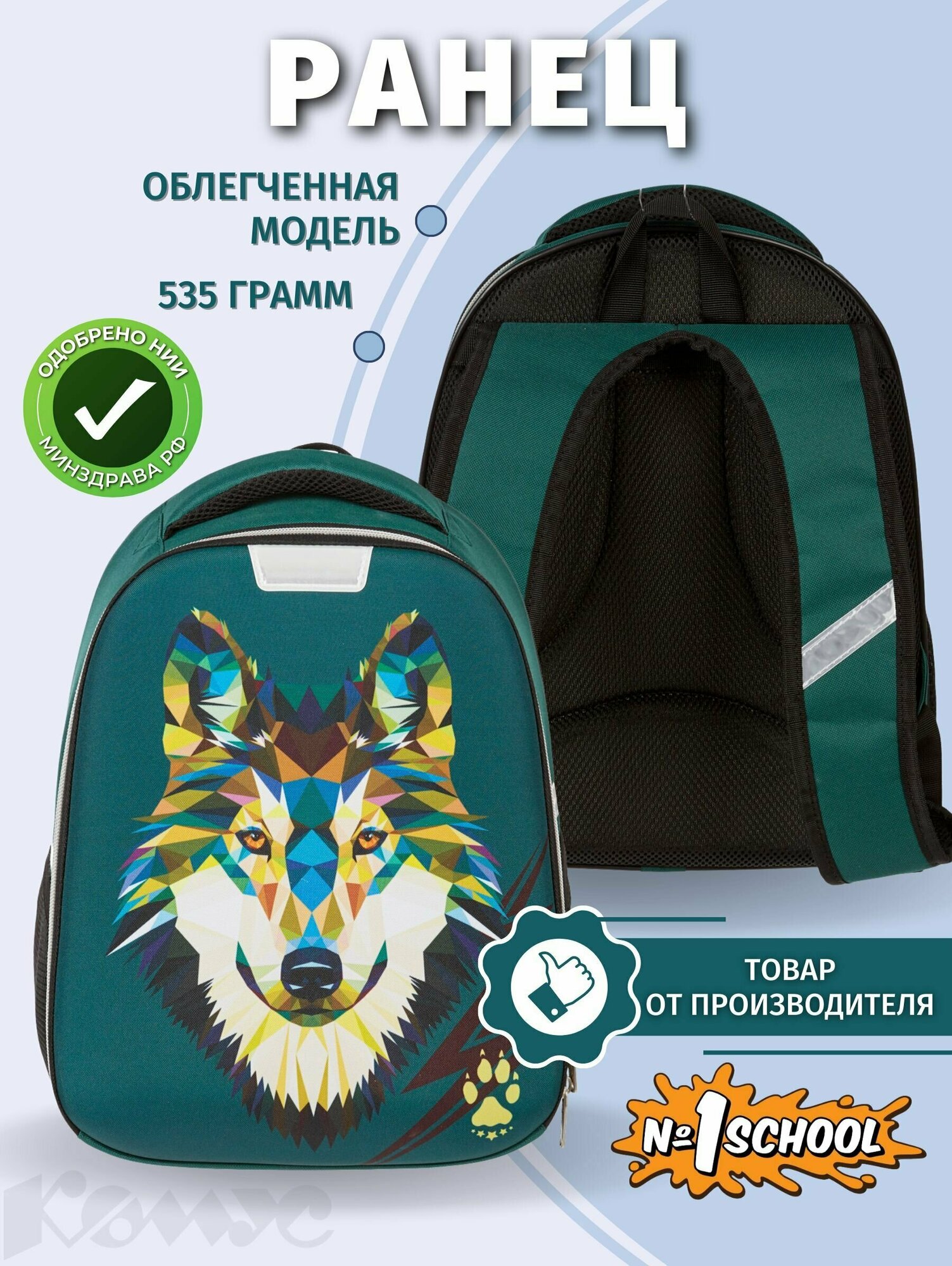 Ранец школьный №1 School Light Волк, 1 отделение, облегченная спинка