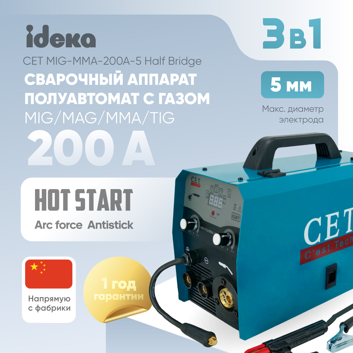 Сварочный полуавтомат CET MIG/TIG/MMA-200A-5, сварочный аппарат полуавтомат с газом интересное: