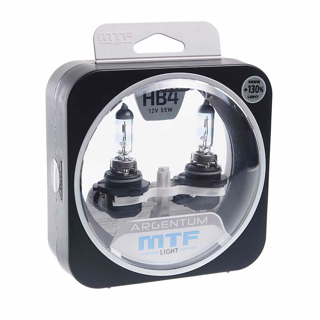 Комплект галогенных ламп HB4 MTF light series Argentum со специальным инновационным покрытием и нить накаливания повышенной эффективности обеспечивают прибавление света на 130% (3500K) комп.2шт.