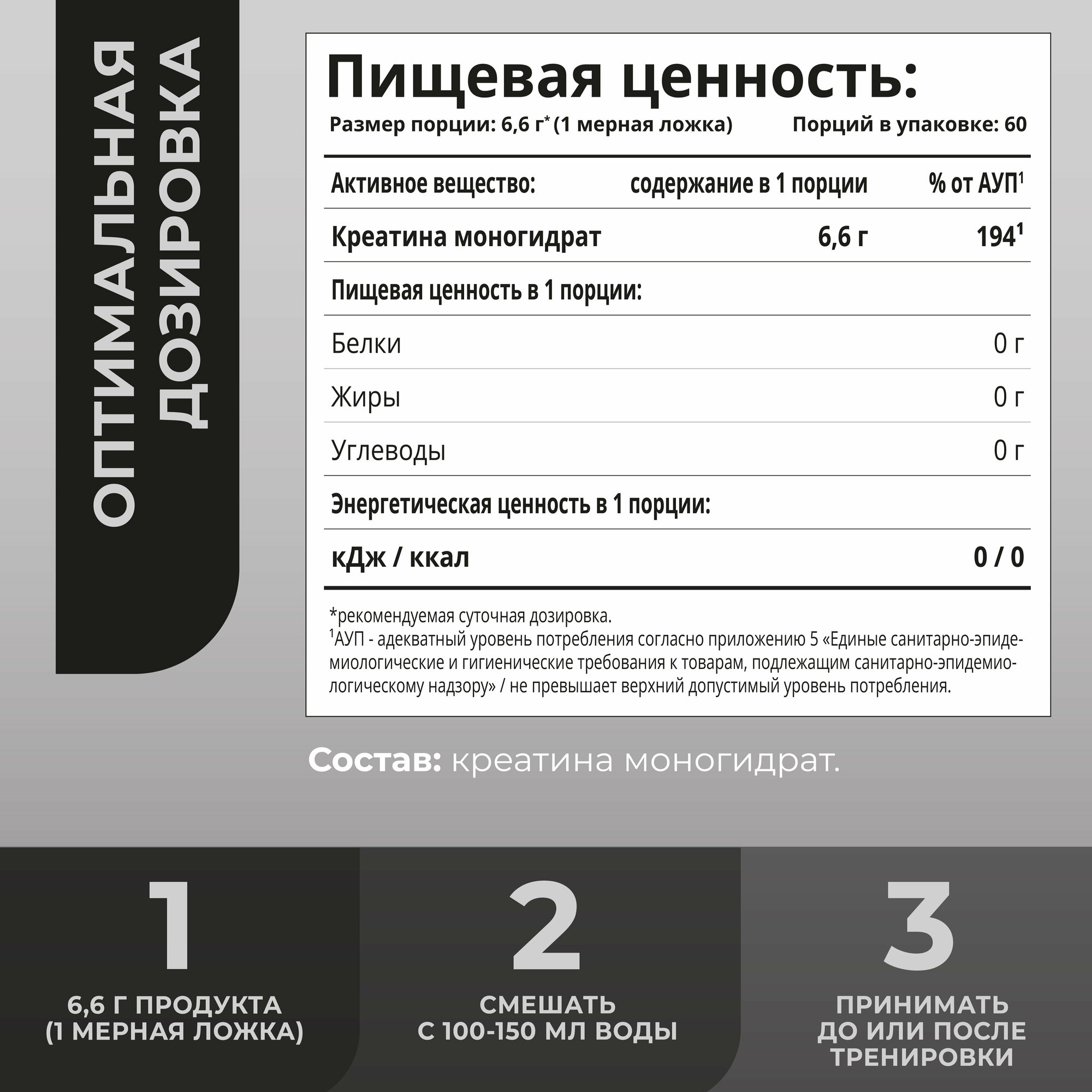 Креатин моногидрат порошок, Вкус Нейтральный, 60 порций, спортивное питание для набора массы тела
