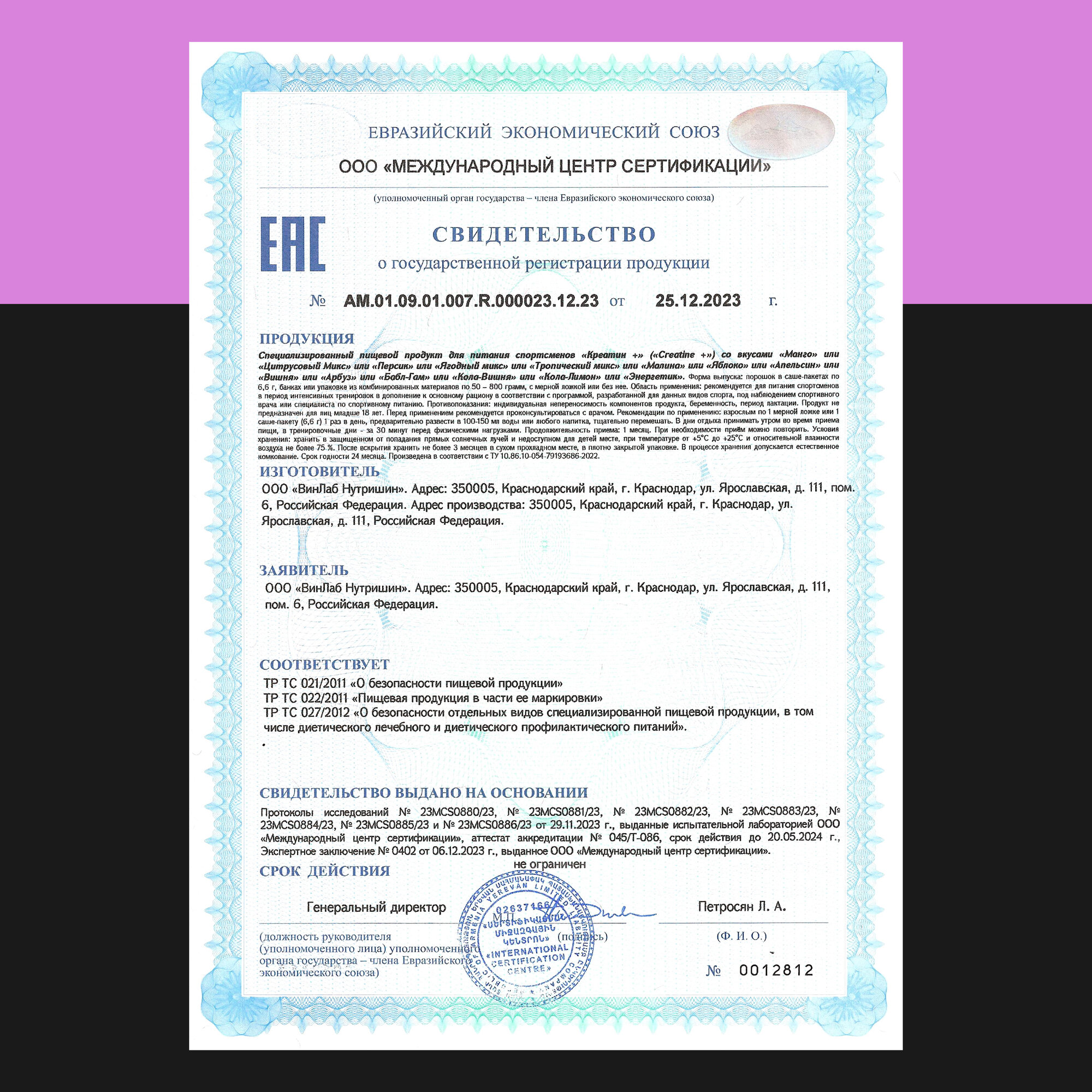 | Форма креатина | креатин моногидрат |