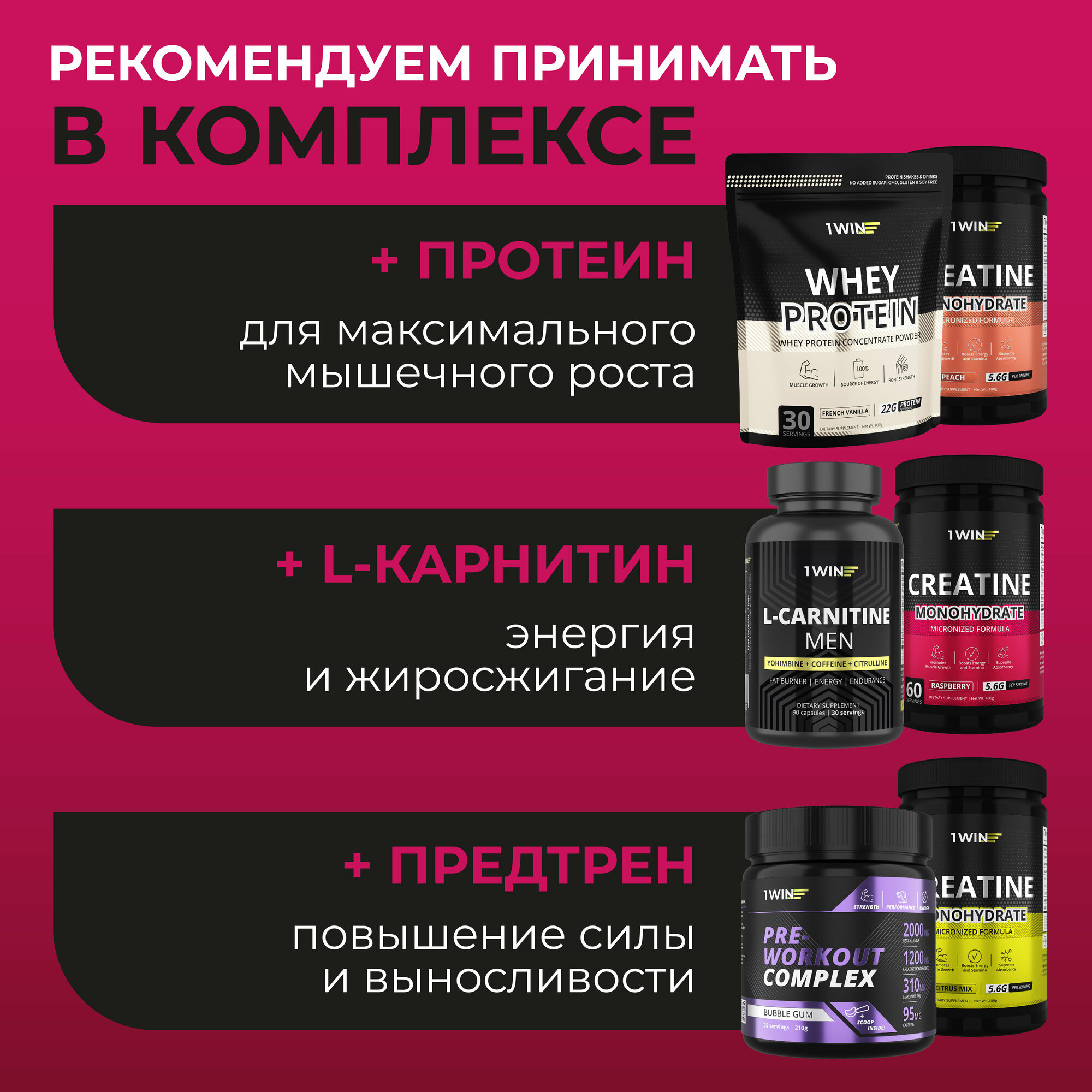 Креатин моногидрат порошок 1WIN, Creatine Monohydrate, Вкус Ягодный микс, 60 порций, спортивное питание для набора массы тела