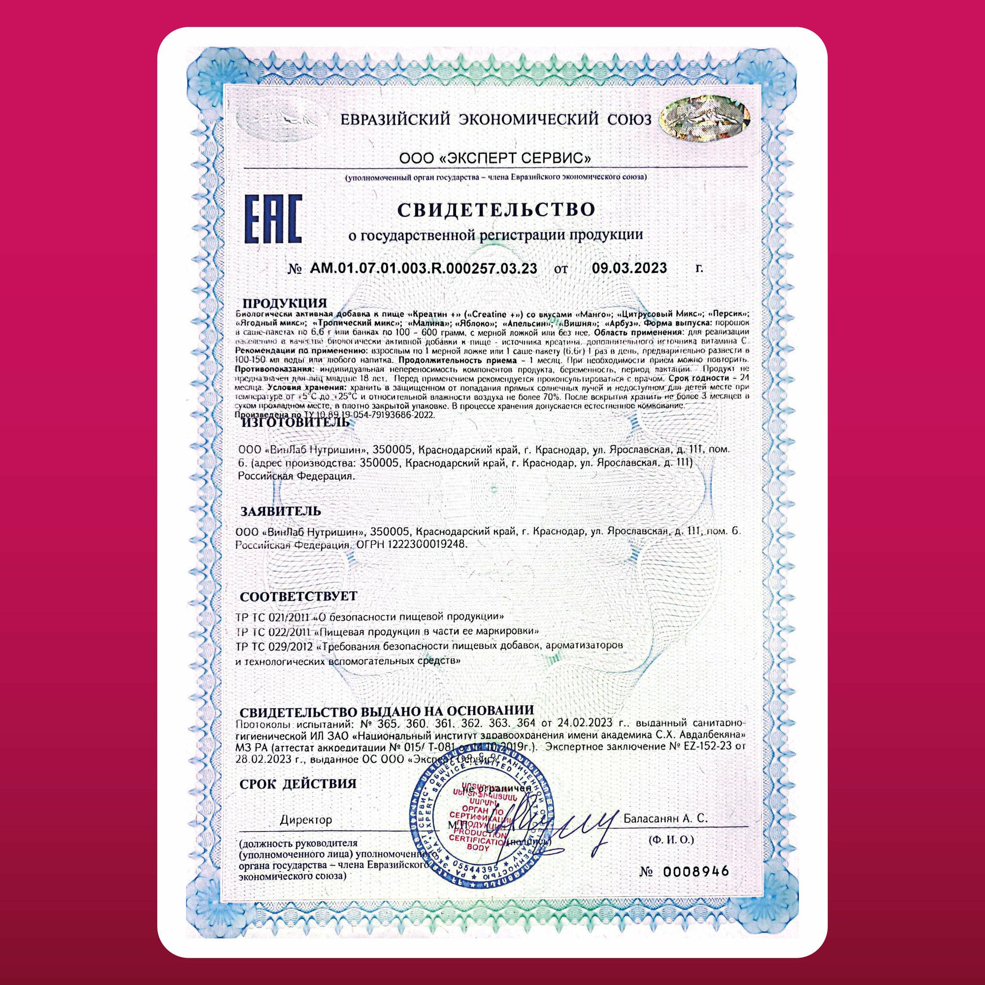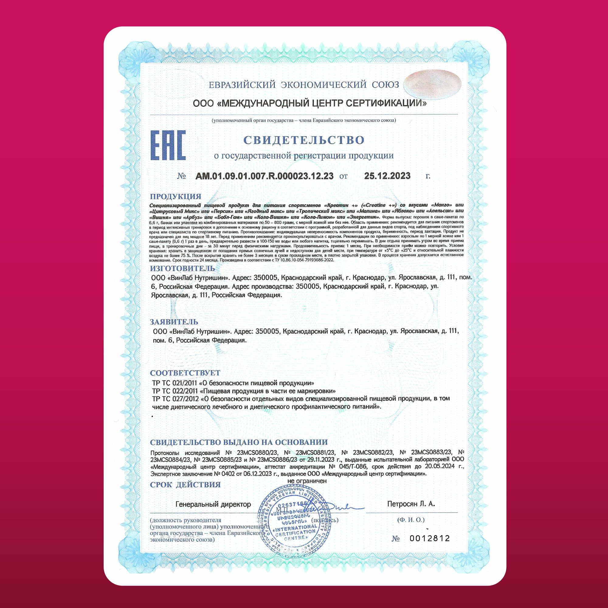 | Дополнительная информация | рекомендации по применению: Рекомендуется принимать по одной мерной ложке (6.6 г), растворив порошок в 250 мл воды или сока; состав: креатин моногидрат, мальтодекстрин, аскорбиновая кислота, подсластитель - сукралоза, ароматизатор |