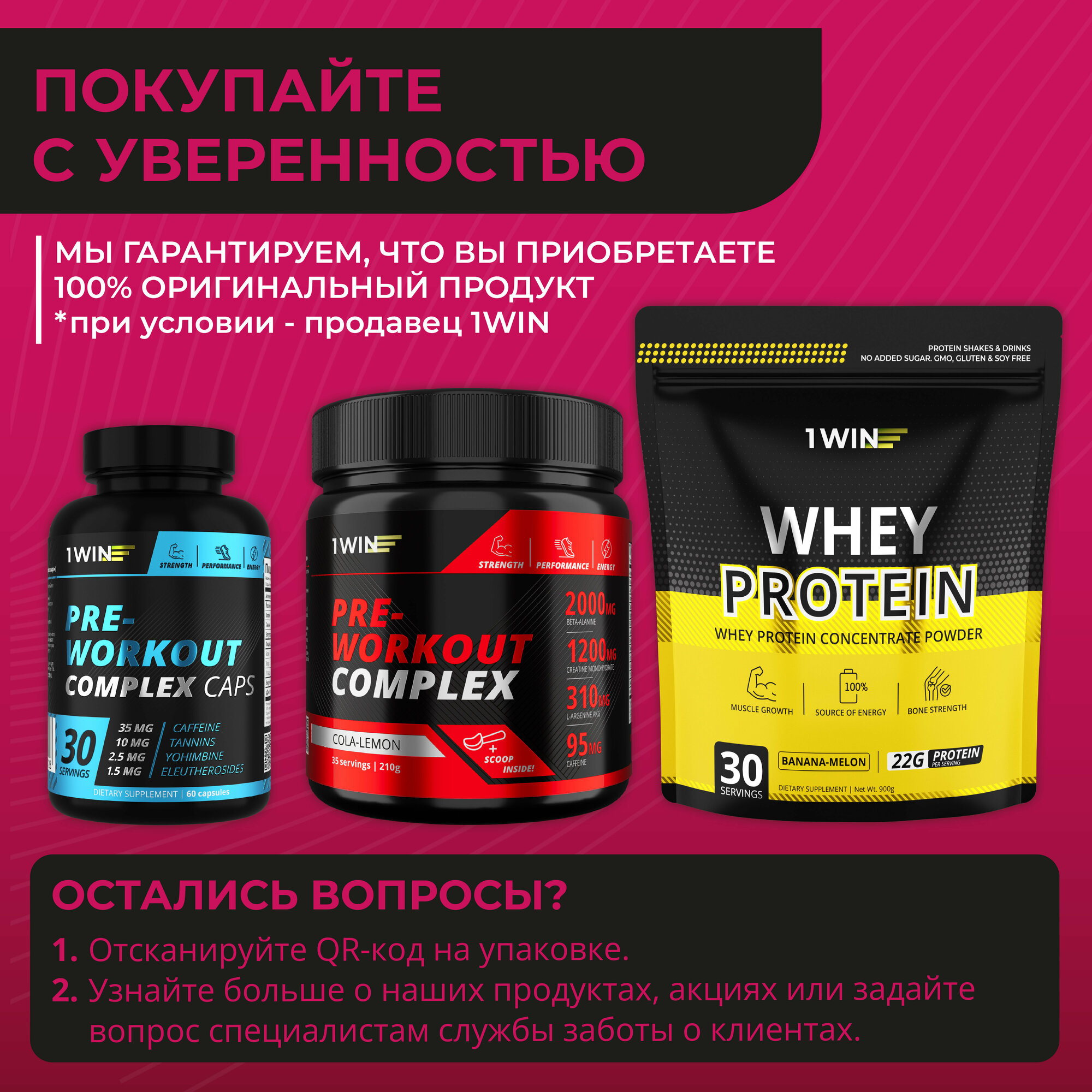 Креатин моногидрат порошок 1WIN, Creatine Monohydrate, Вкус Энергетик, 30 порций, спортивное питание для набора массы тела