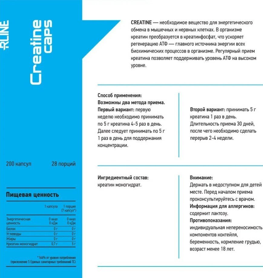 Креатин Капсулы RLine Creatine Caps, 200 капсул