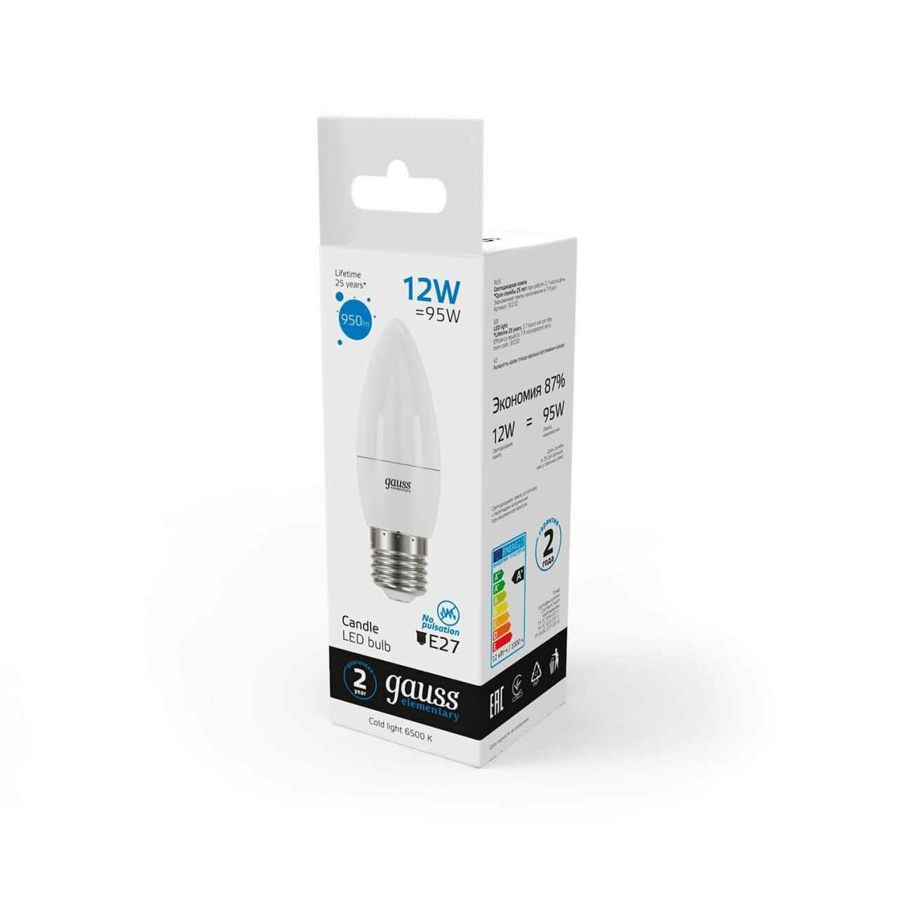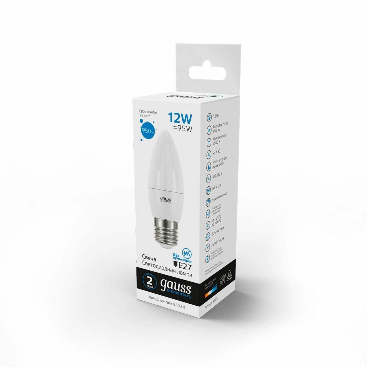 Gauss Лампа Elementary Свеча 12W 950lm 6500K E27 LED 1/10/100 30232