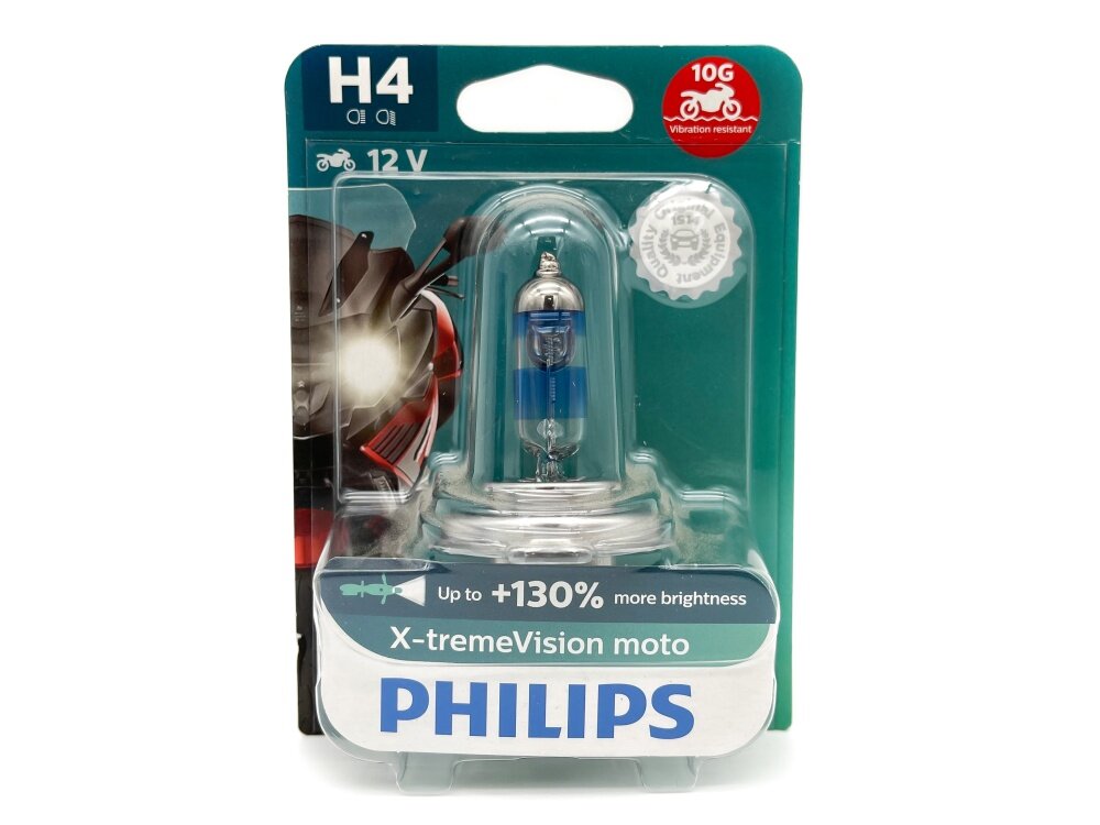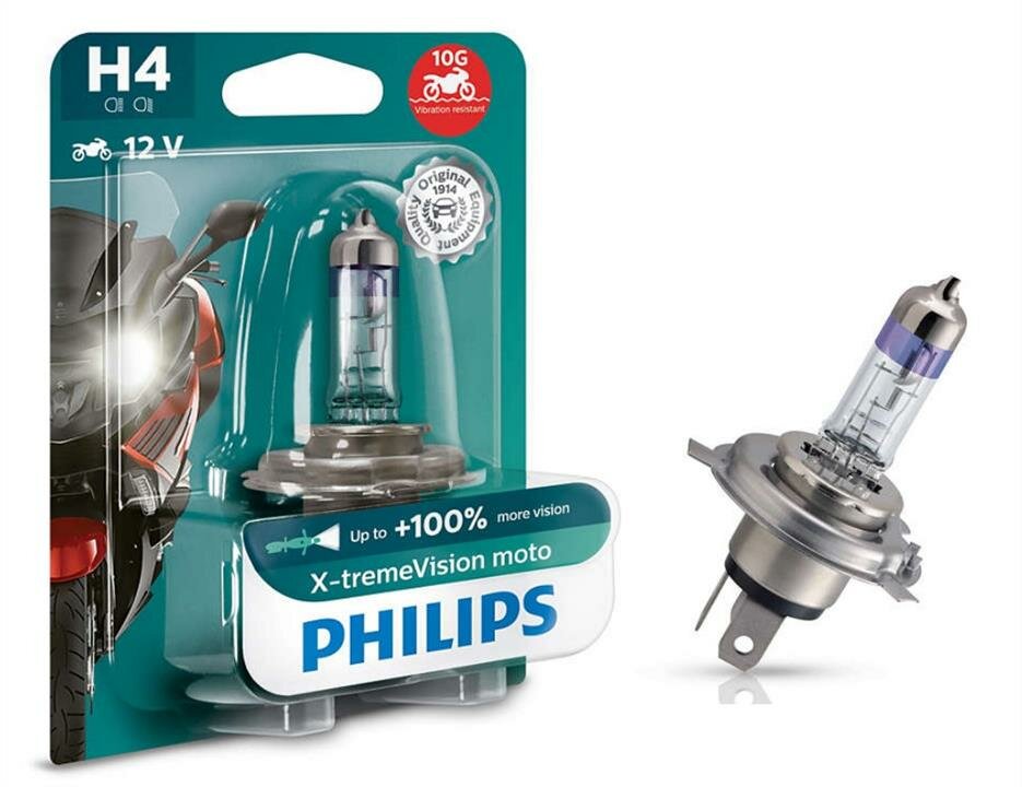 Лампа мотоциклетная PHILIPS X-tremeVision Moto H4 60/55W P43t-38+130% 12V, бл. 1шт