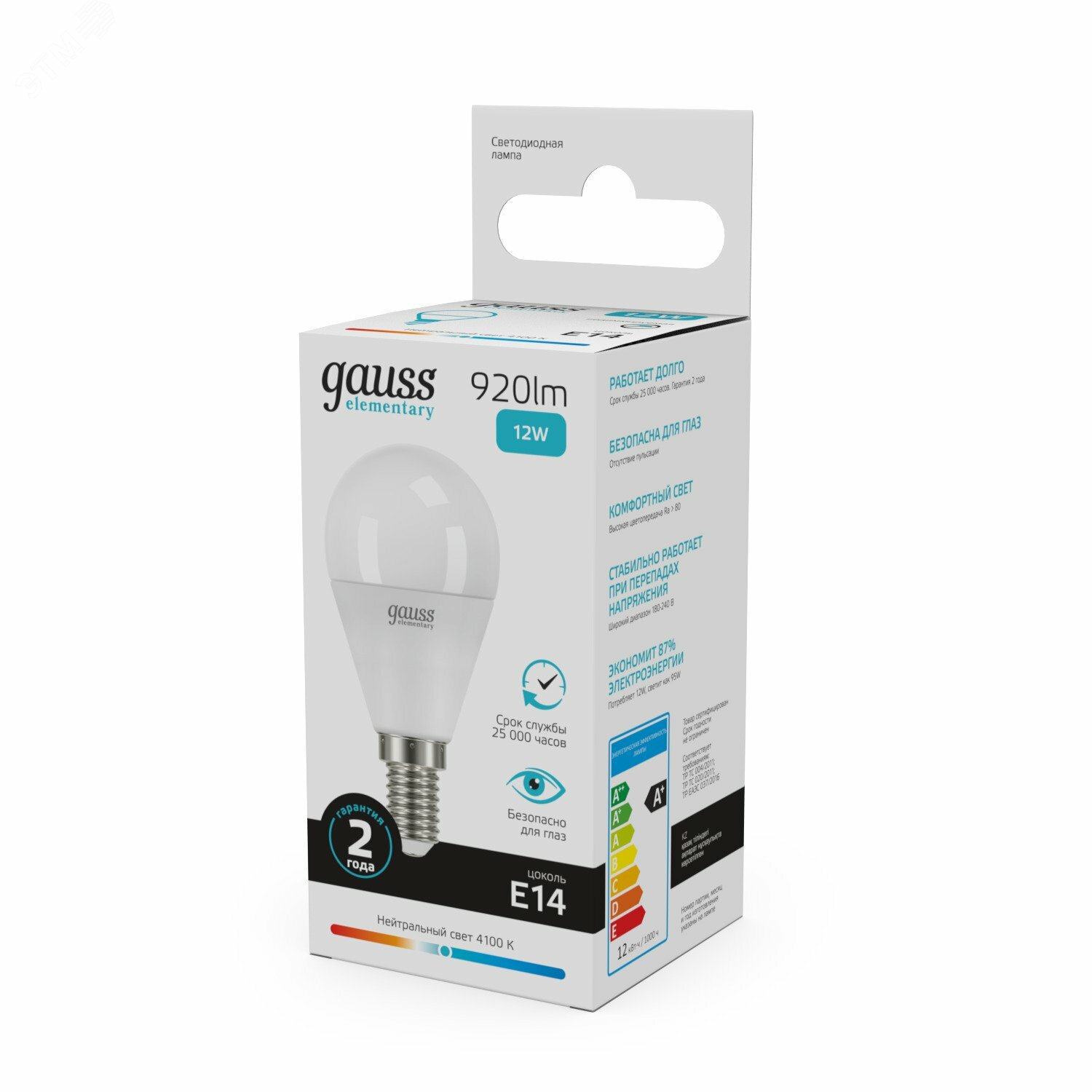 Светодиодная лампа Gauss Elementary Шар 12W 920lm 4100K Е14 LED 1/10/100 53122