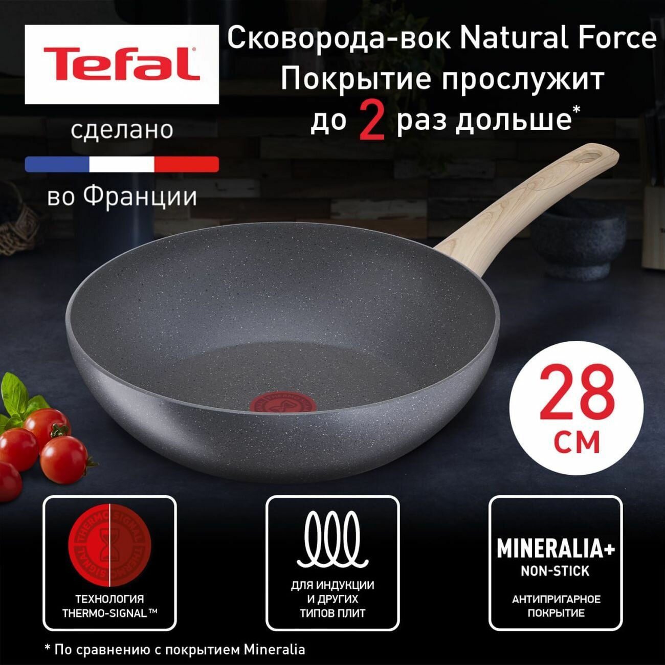 Купить Сковорода-вок 28 см Tefal Natural Force с антипригарным покрытием, с индикатором температуры, для всех видов плит, включая индукционные, сделано во Франции