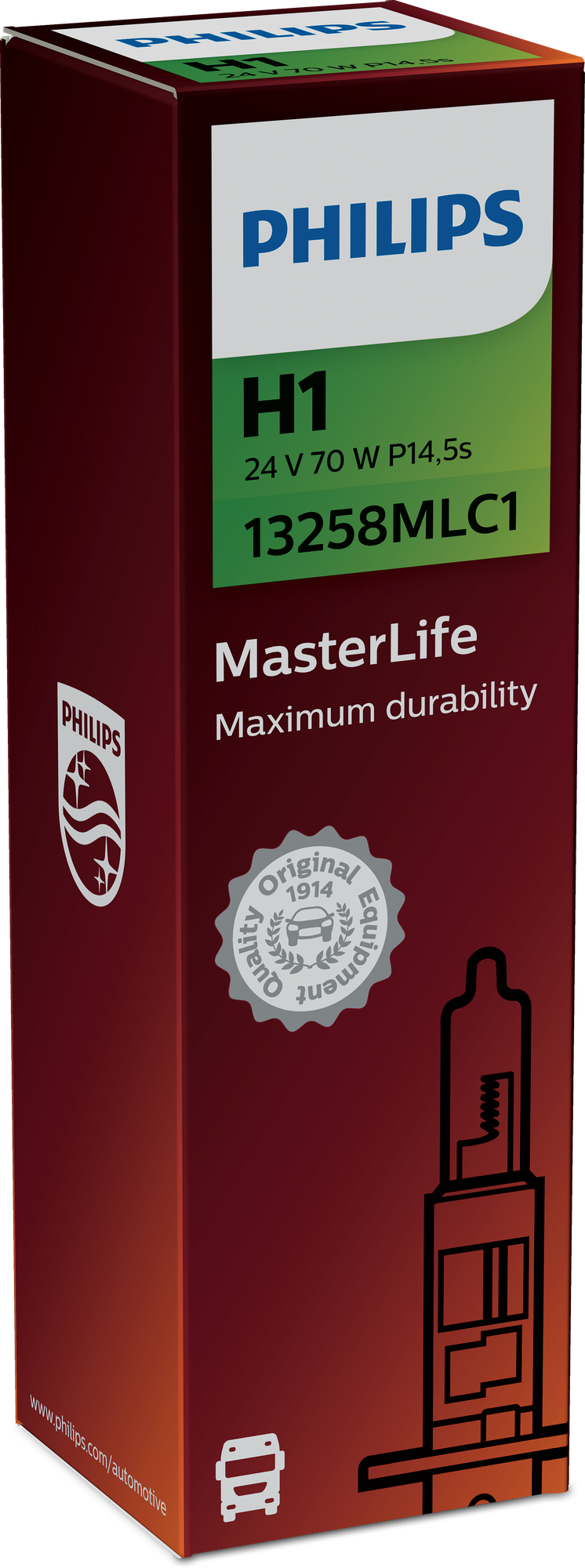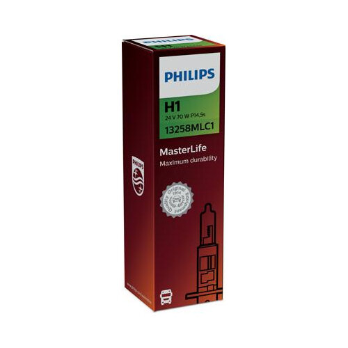 Лампа Галогенная H1 / 24V / 70W / P14,5S H1 / 24V / 70W / P14,5S / Masterlife / Упаковка -Картон Philips арт. 13258MLC1