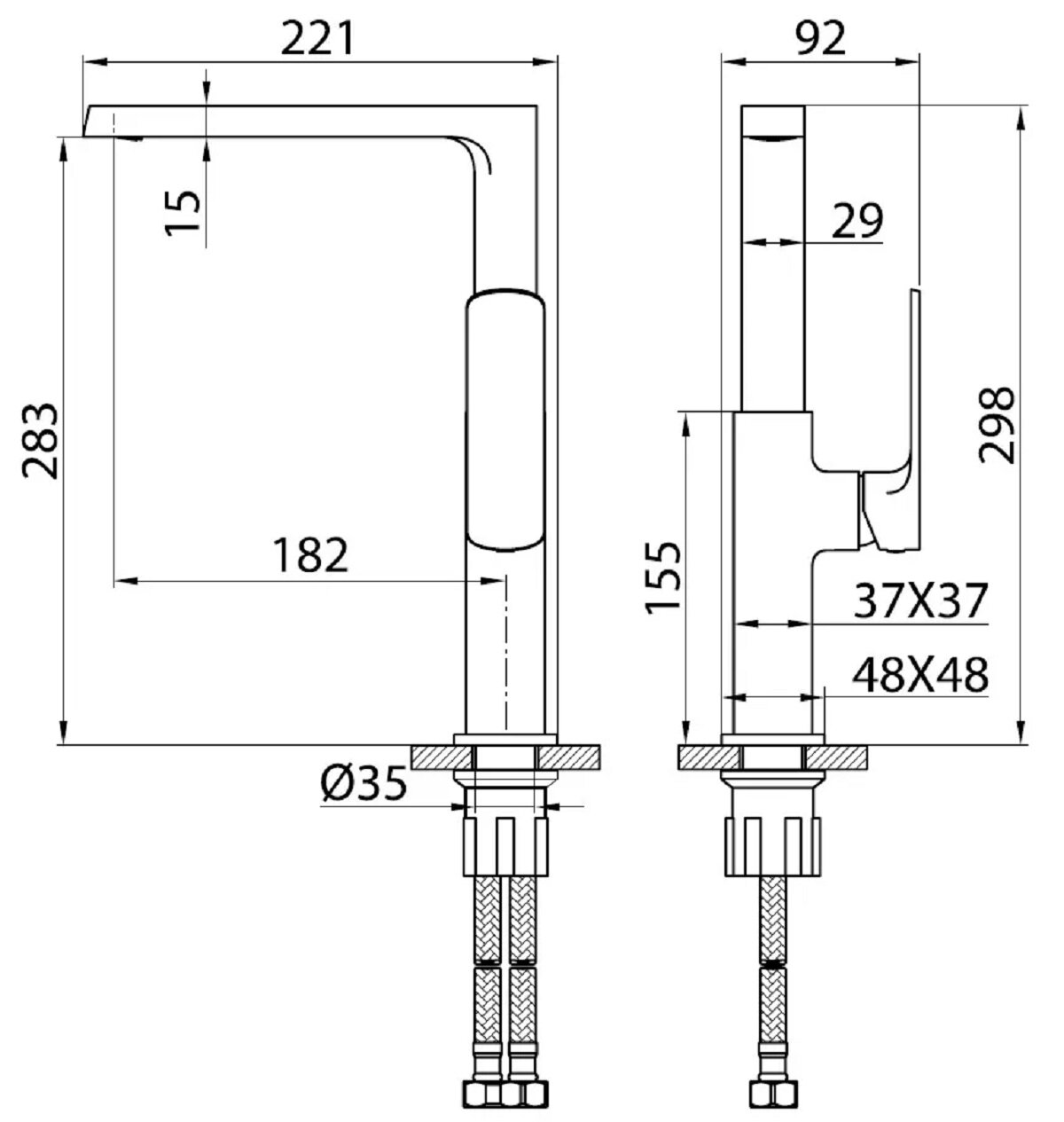 | Комплектация | Смеситель, набор крепежа для установки смесителя, установочный ключ, 2 гибких шланга для подвода воды |