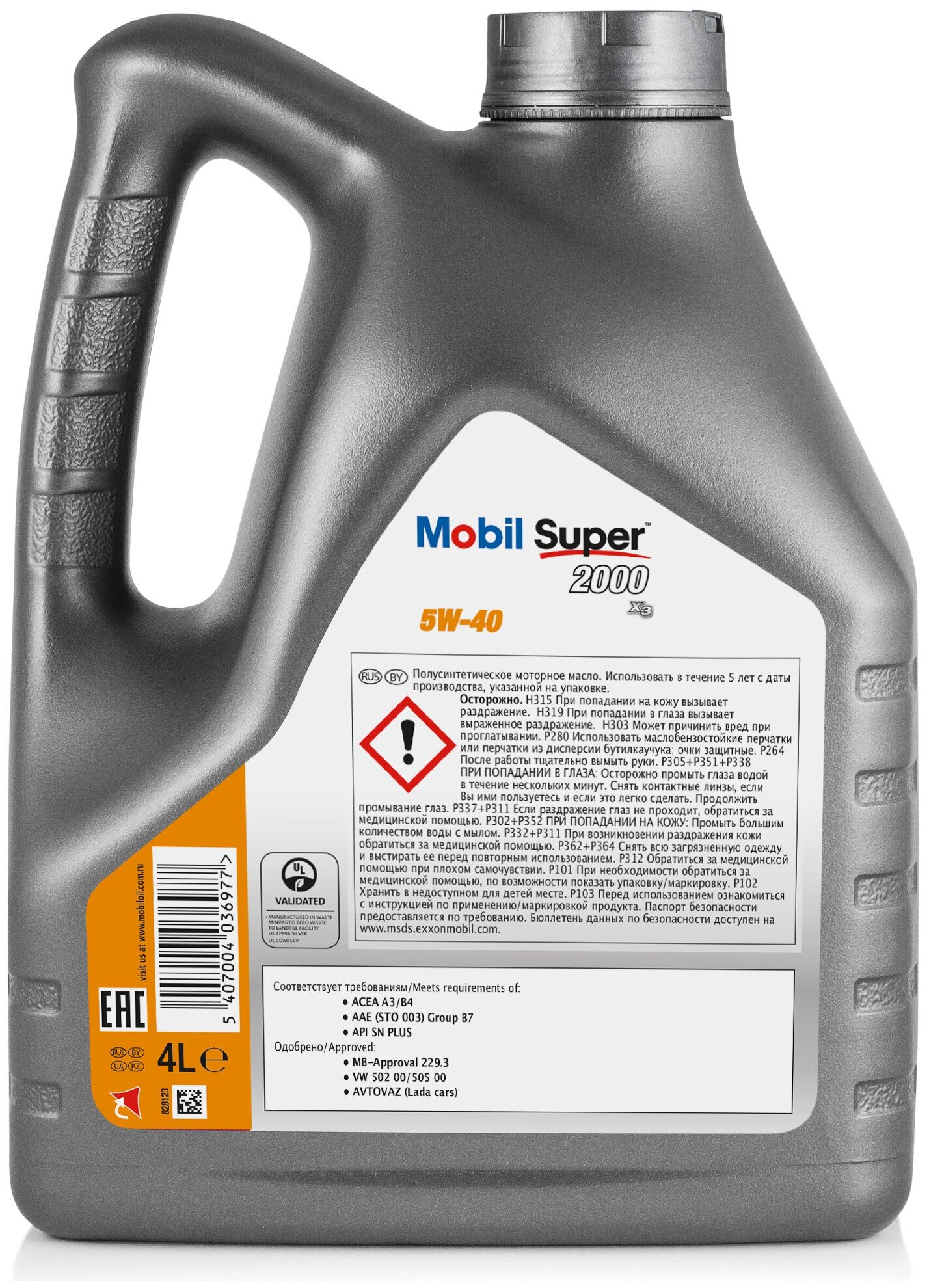 Полусинтетическое моторное масло MOBIL Super 2000 X3 5W-40, 4 л (оригинал, QR-код в РФ НЕ работает!)