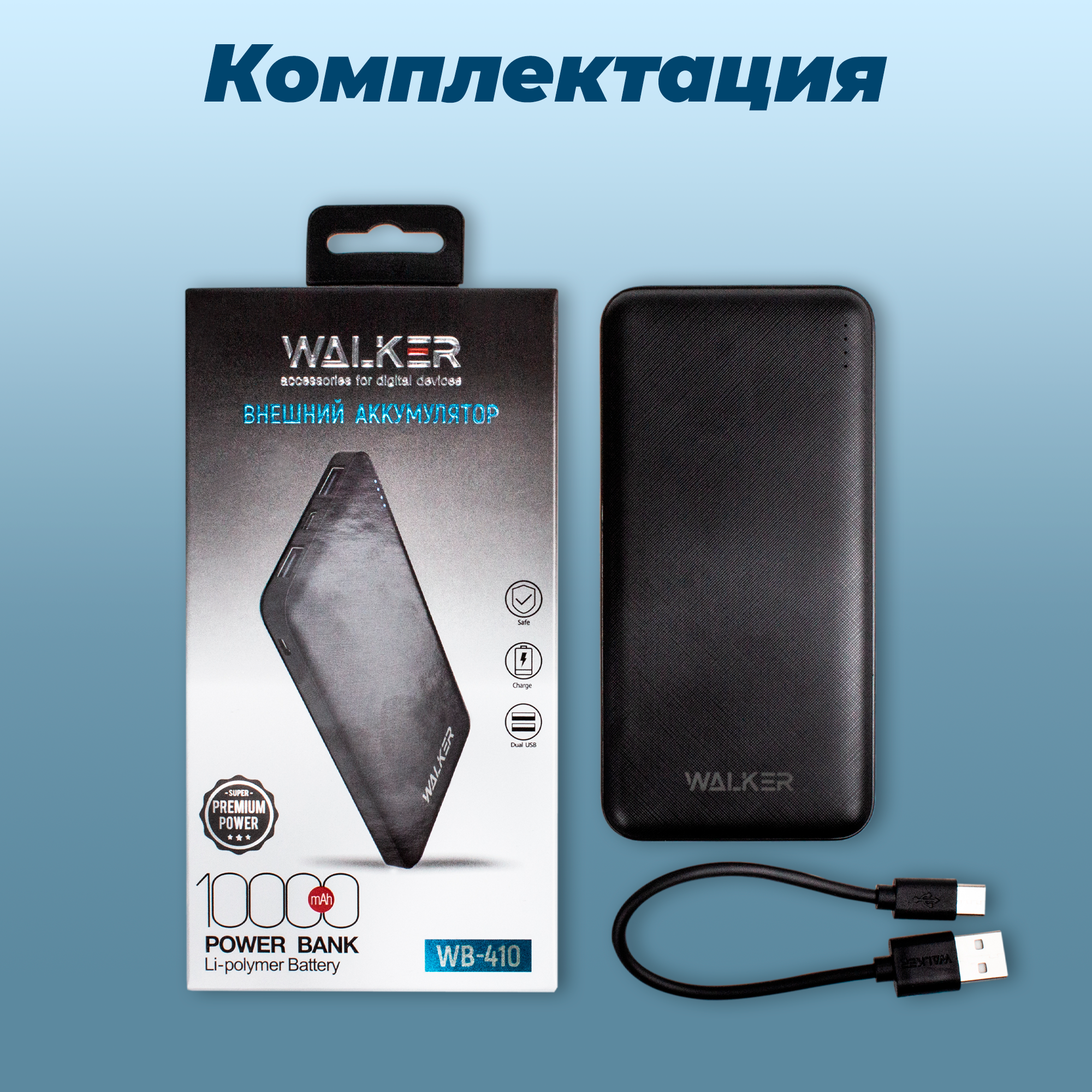 Повербанк для iphone 10000 mAh WALKER WB-410 power bank для телефона, внешний аккумулятор на honor, пауэр банк для redmi, пауэрбанк для xiaomi, черный