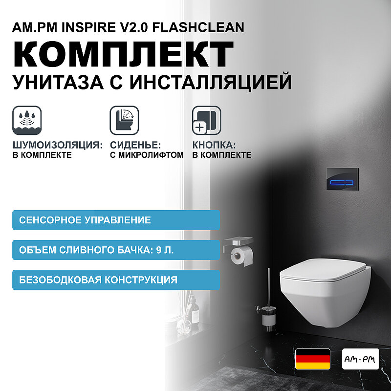 Комплект унитаза AM.PM Inspire V2.0 FlashClean IS450A38.50A1700 с инсталляцией, сиденьем микролифт и клавишей смыва черной