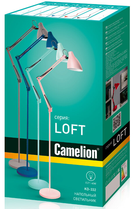 Лампа офисная Camelion Loft KD-331, E27, 40 Вт, белый