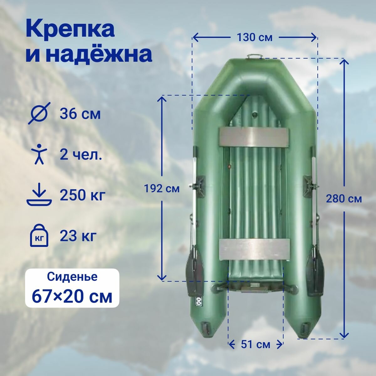 | Внешние размеры лодки (Ш х Д) | 130 х 280 см |
