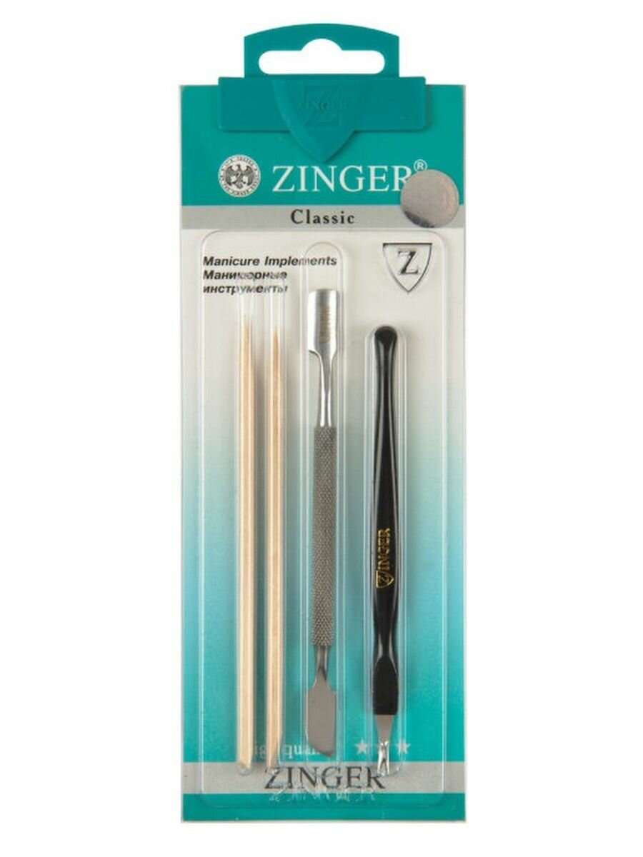 Zinger набор маникюрных инструментов zo-SIS- 37 (Триммер + Двусторонний пушер + 2 апельсиновые палочки)