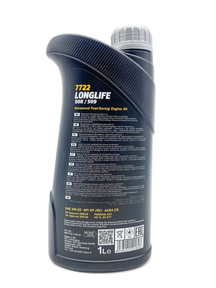 Синтетическое моторное масло Mannol 7722 Longlife 508/509 0W-20, 1 л, 1 кг, 1 шт