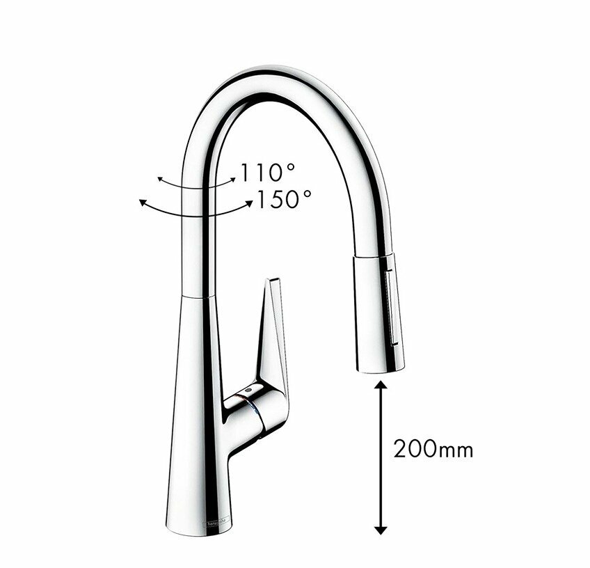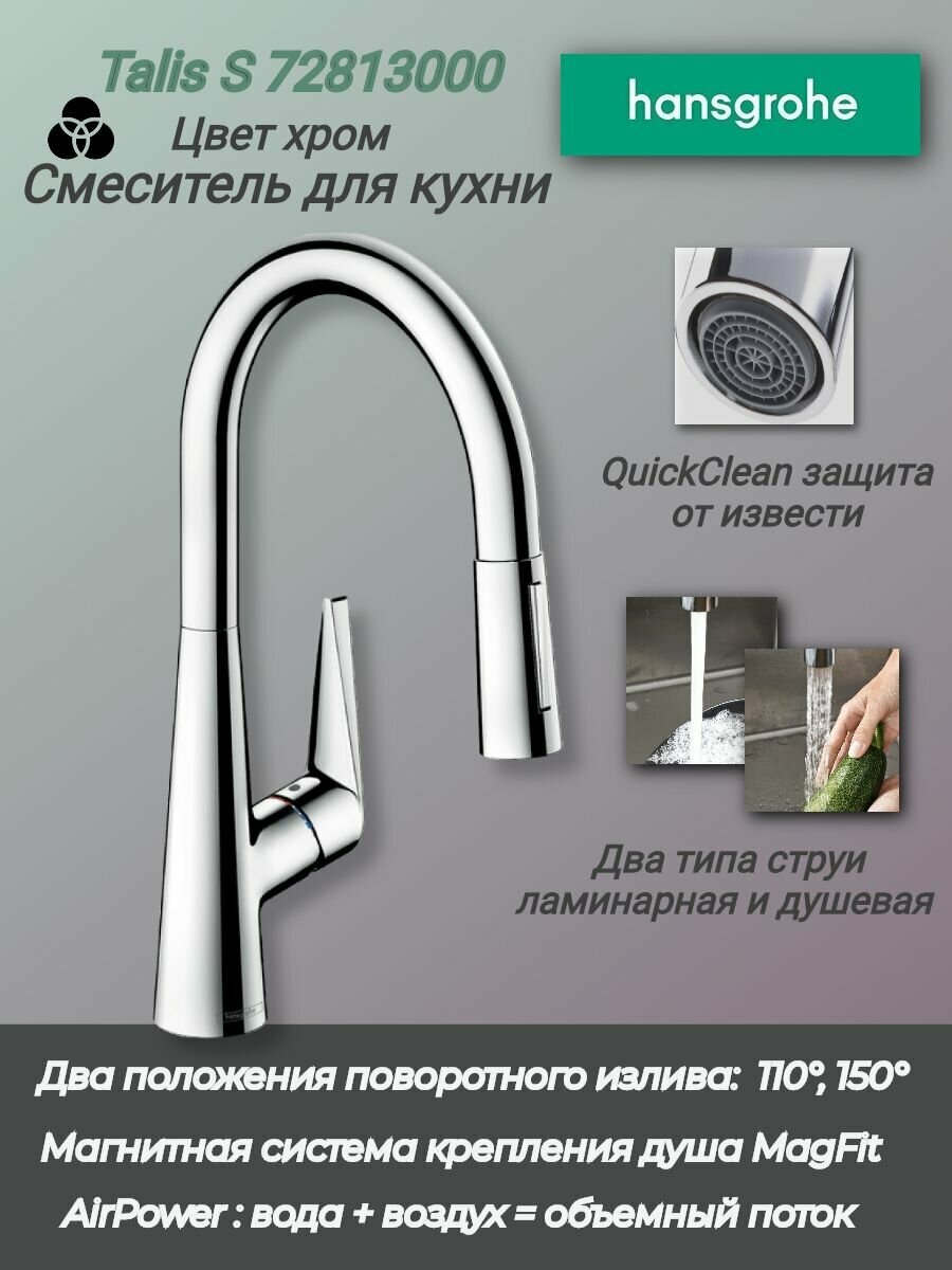 Смеситель для кухни с выдвижной лейкой Hansgrohe Talis S, арт. 72813000, поворотный излив, ComfortZone 200
