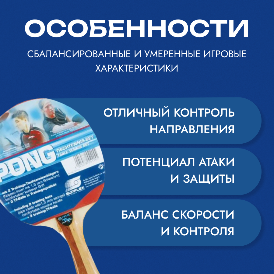 Набор для настольного тенниса Sunflex Pong (2 ракетки, 3 мяча) интересное: