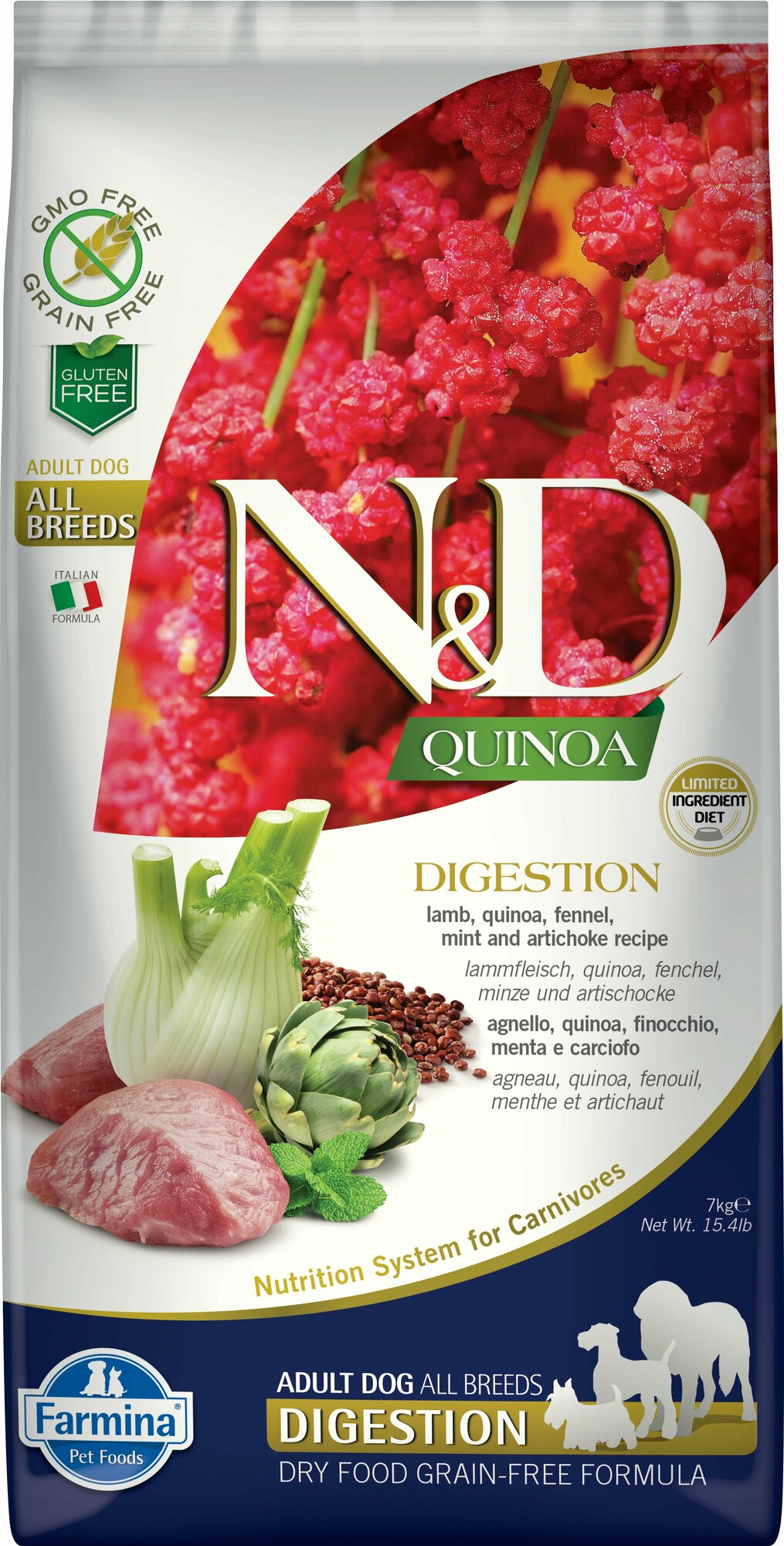 Купить Сухой корм Farmina N&D Quinoa Digestion Lamb Adult Medium&Maxi, для взрослых собак средних и крупных пород, беззерновой, поддержка пищеварения, ягненок, киноа, фенхель, мята и артишок, 7 кг