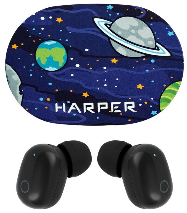 Наушники TWS HARPER HB-532, черный, с принтом на кейсе (new space)