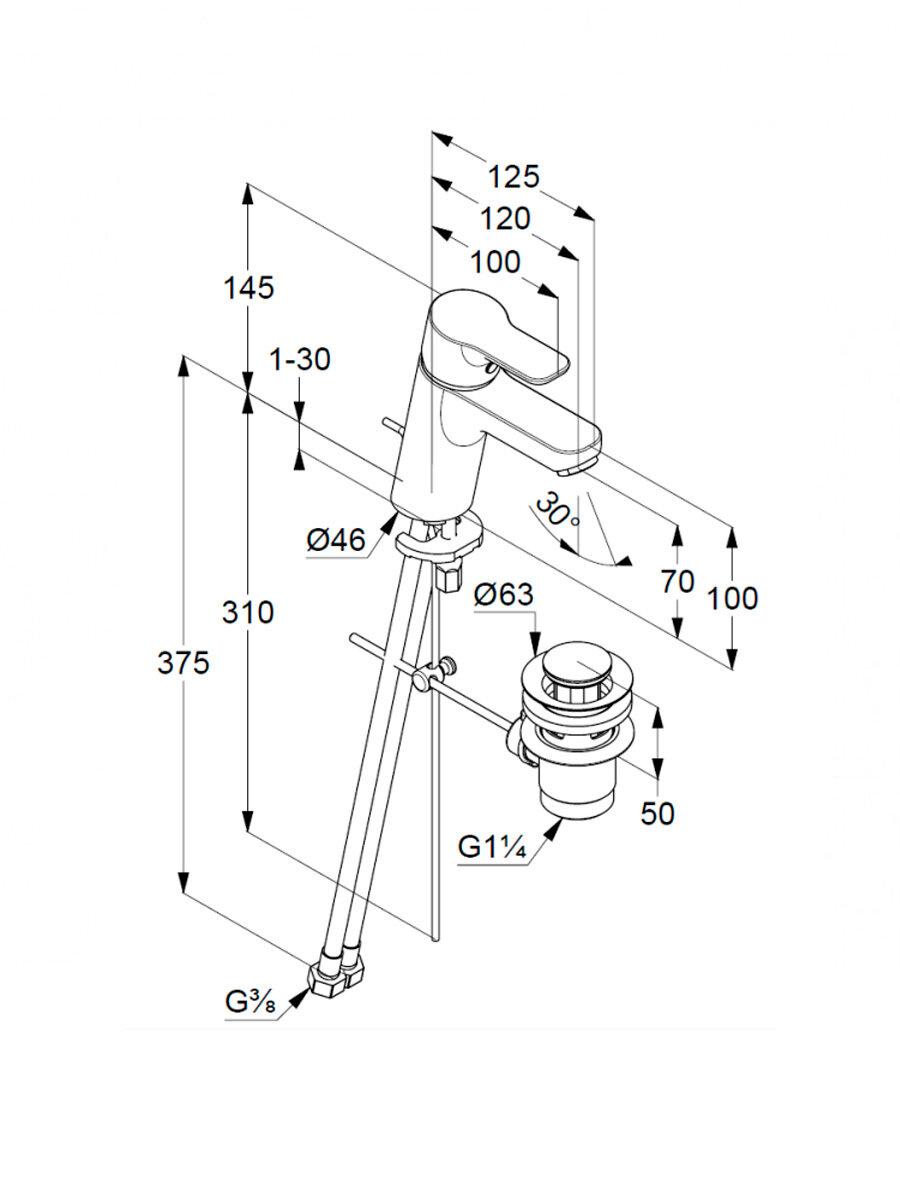 Смеситель для раковины с донным клапаном Kludi Pure&Easy 373820565